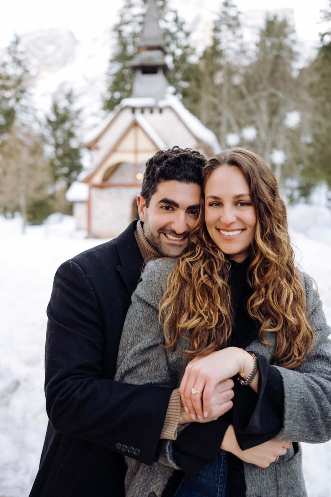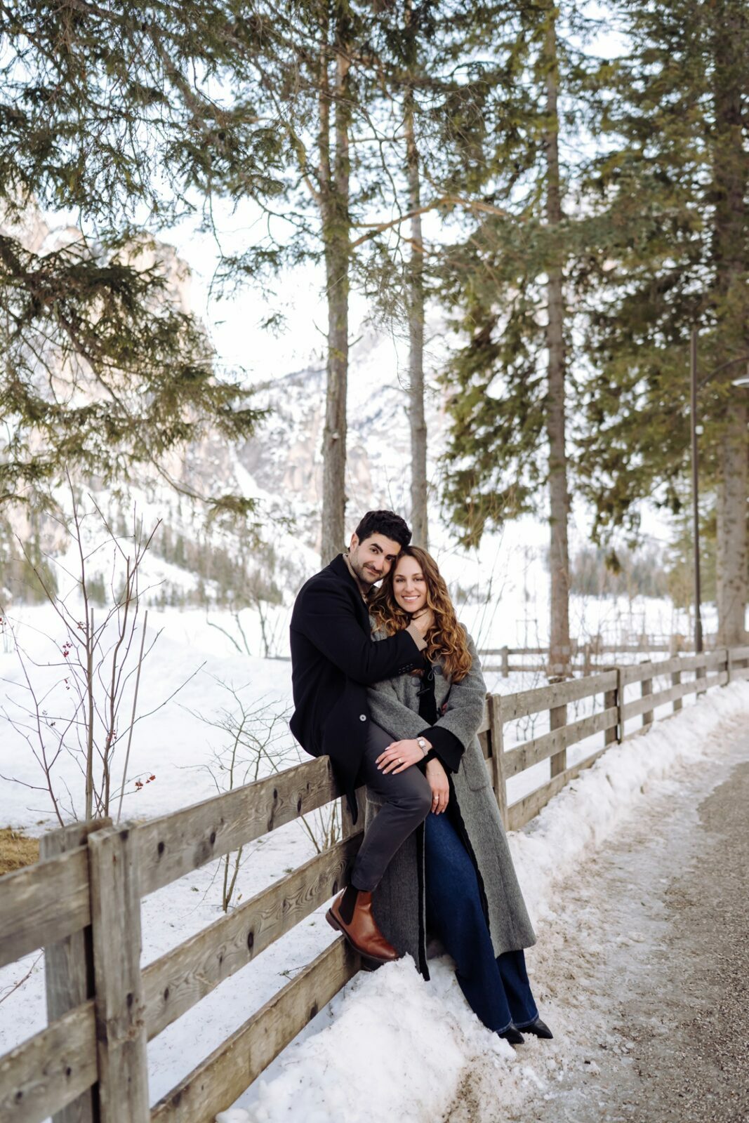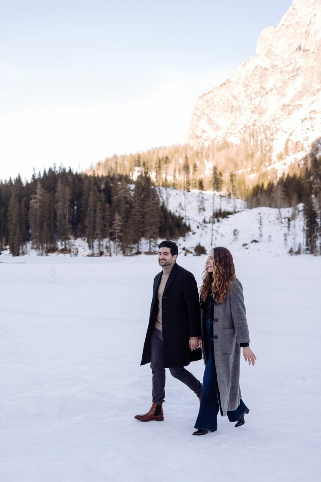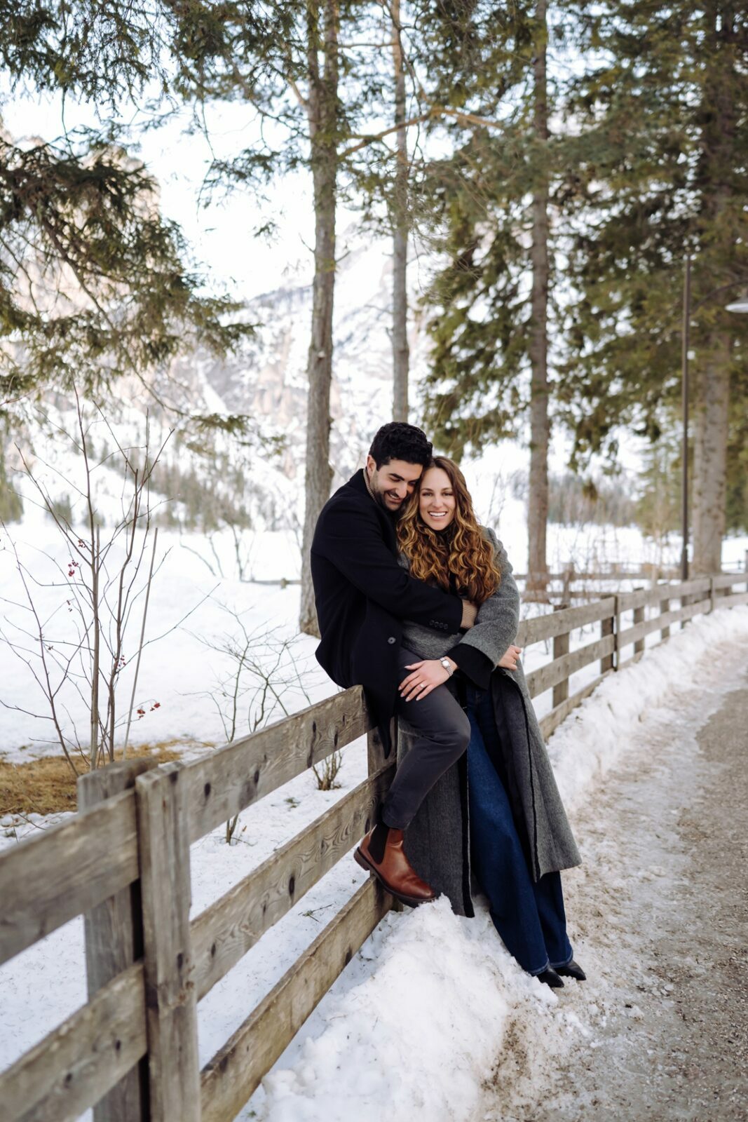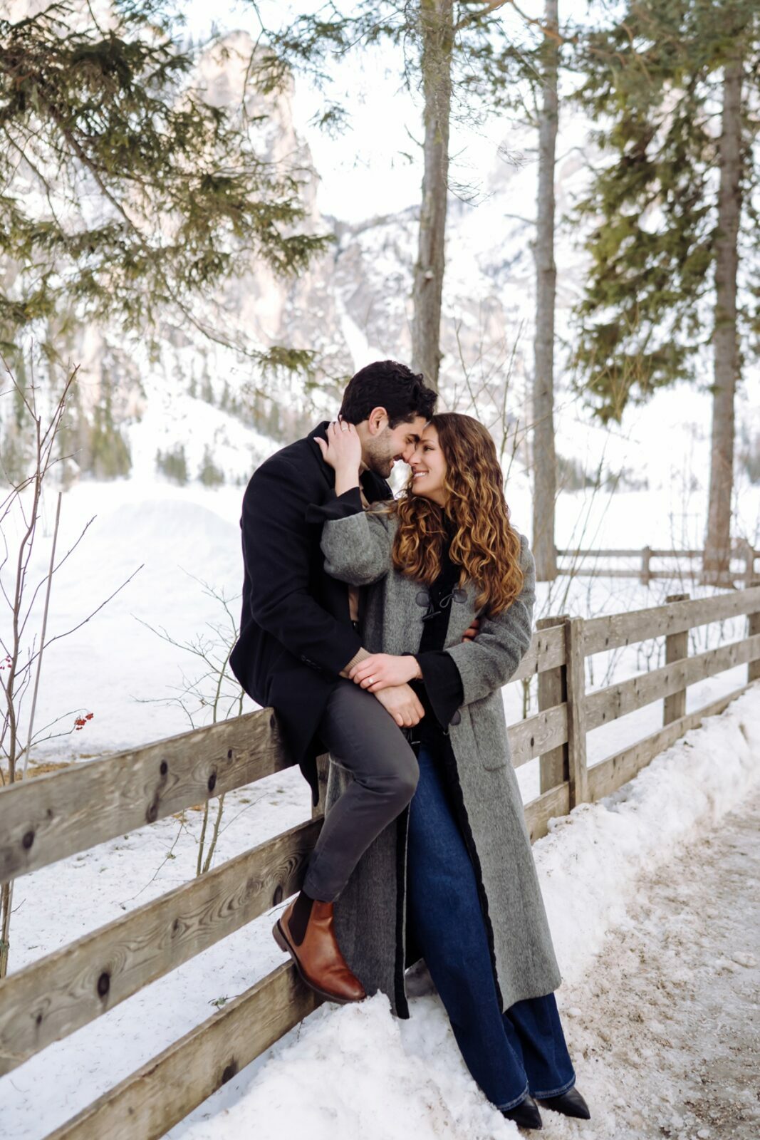 Pedido de casamento sobre o congelado Lago di Braies, nas Dolomitas