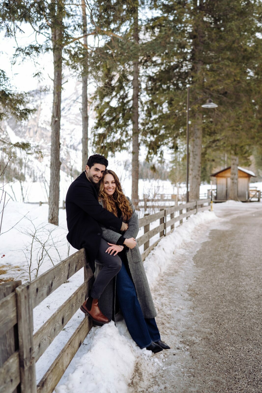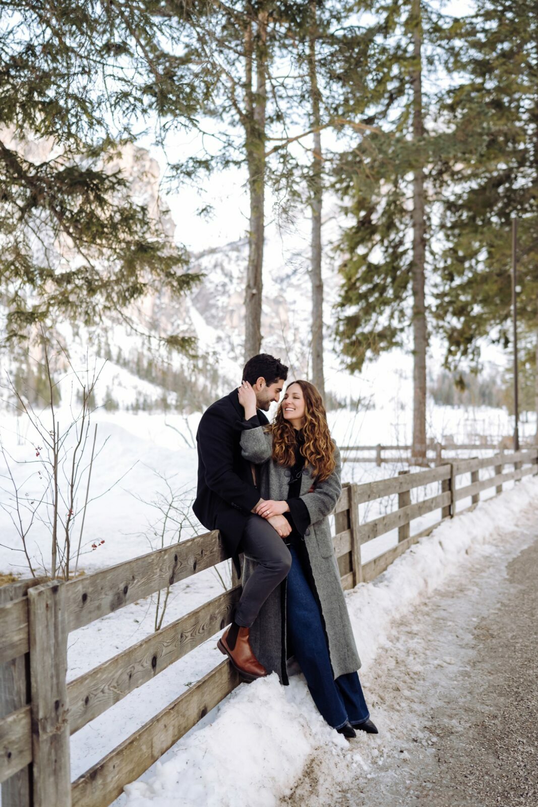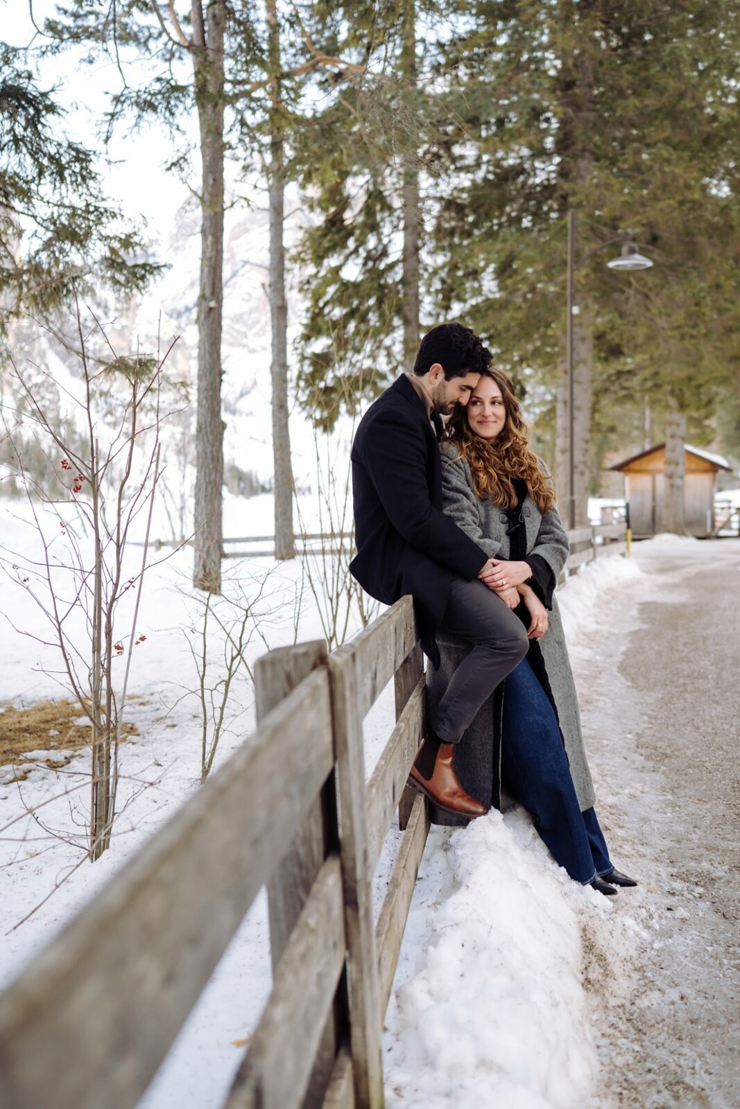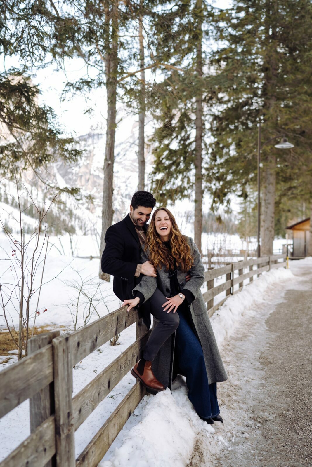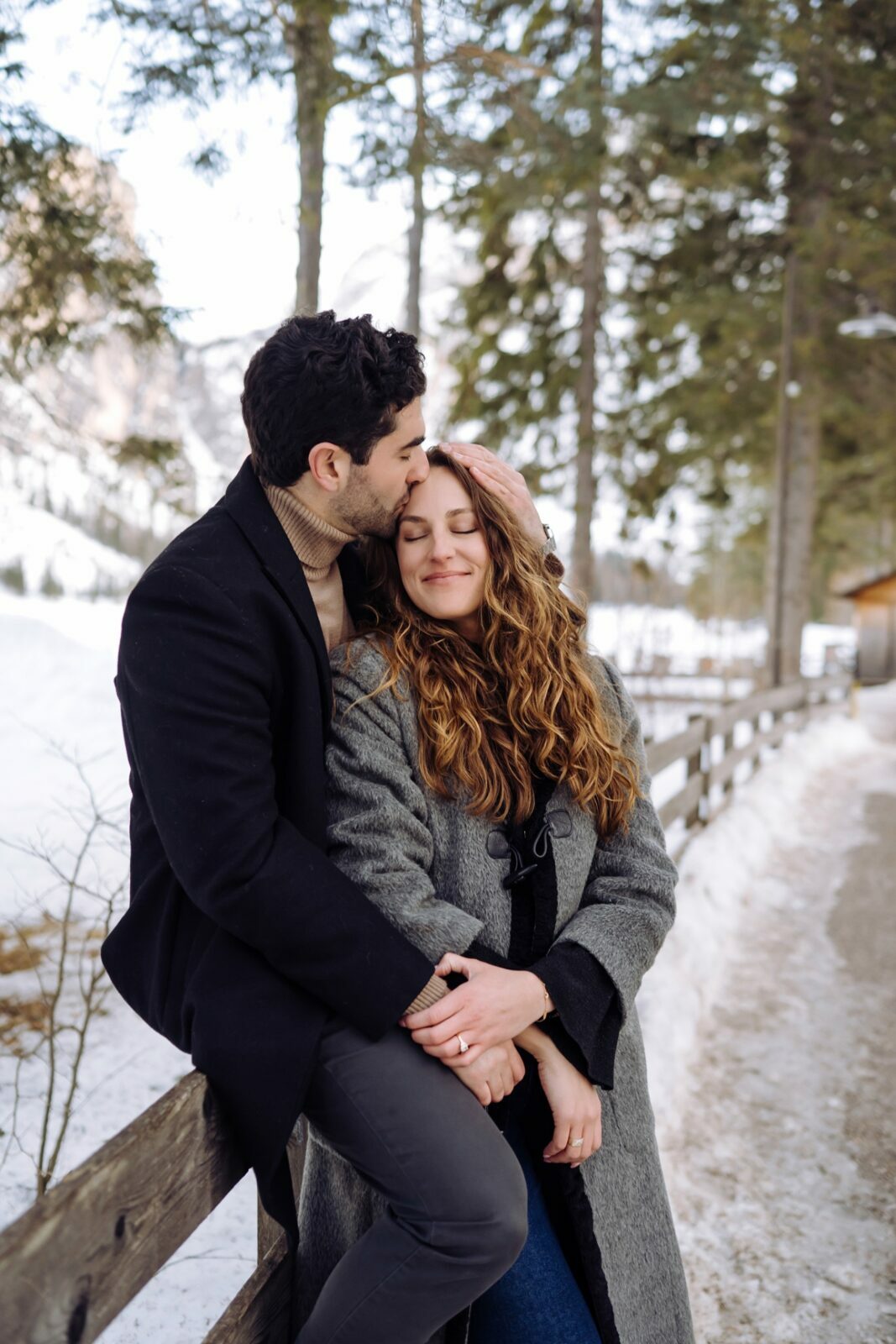 Pedido de casamento sobre o congelado Lago di Braies, nas Dolomitas