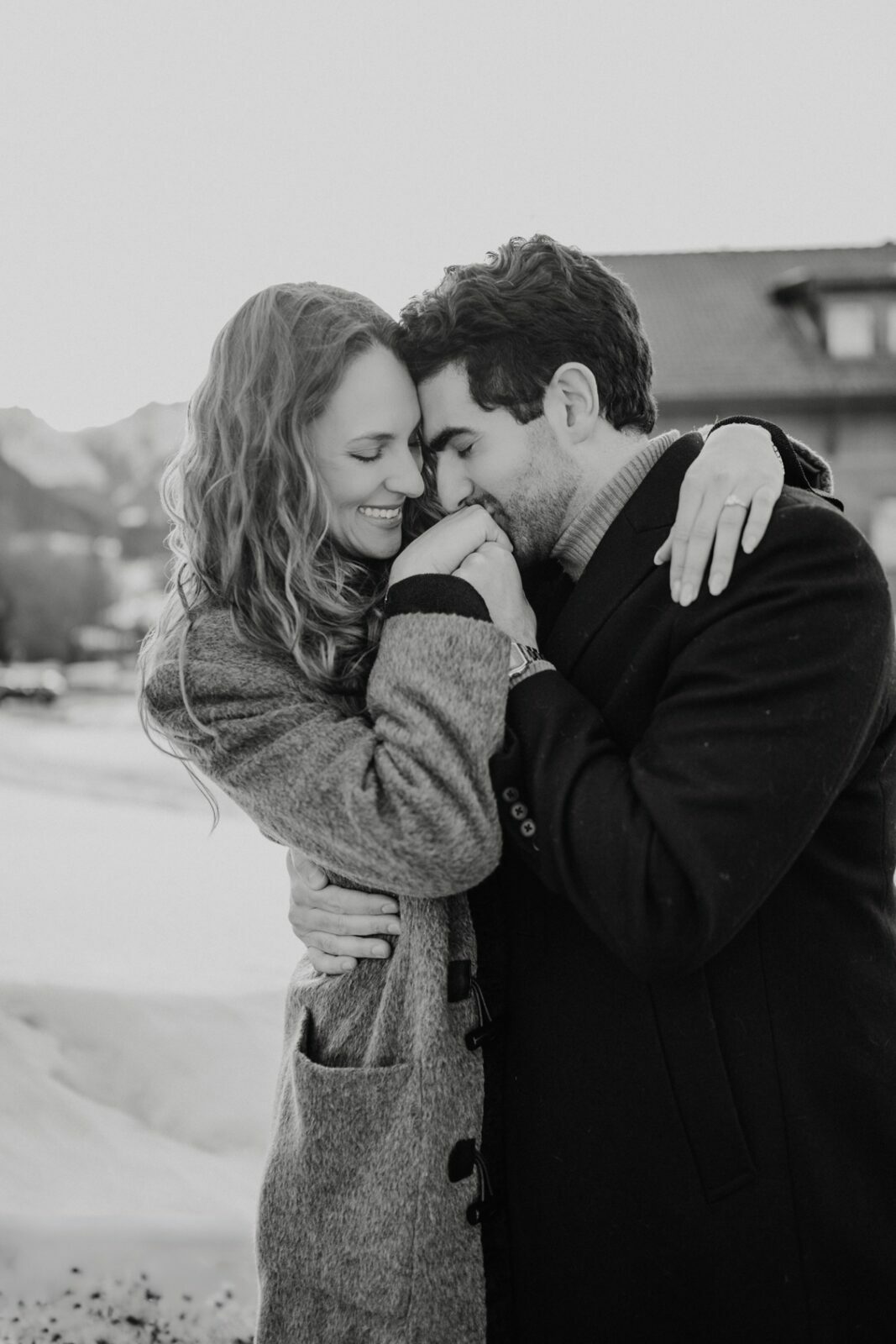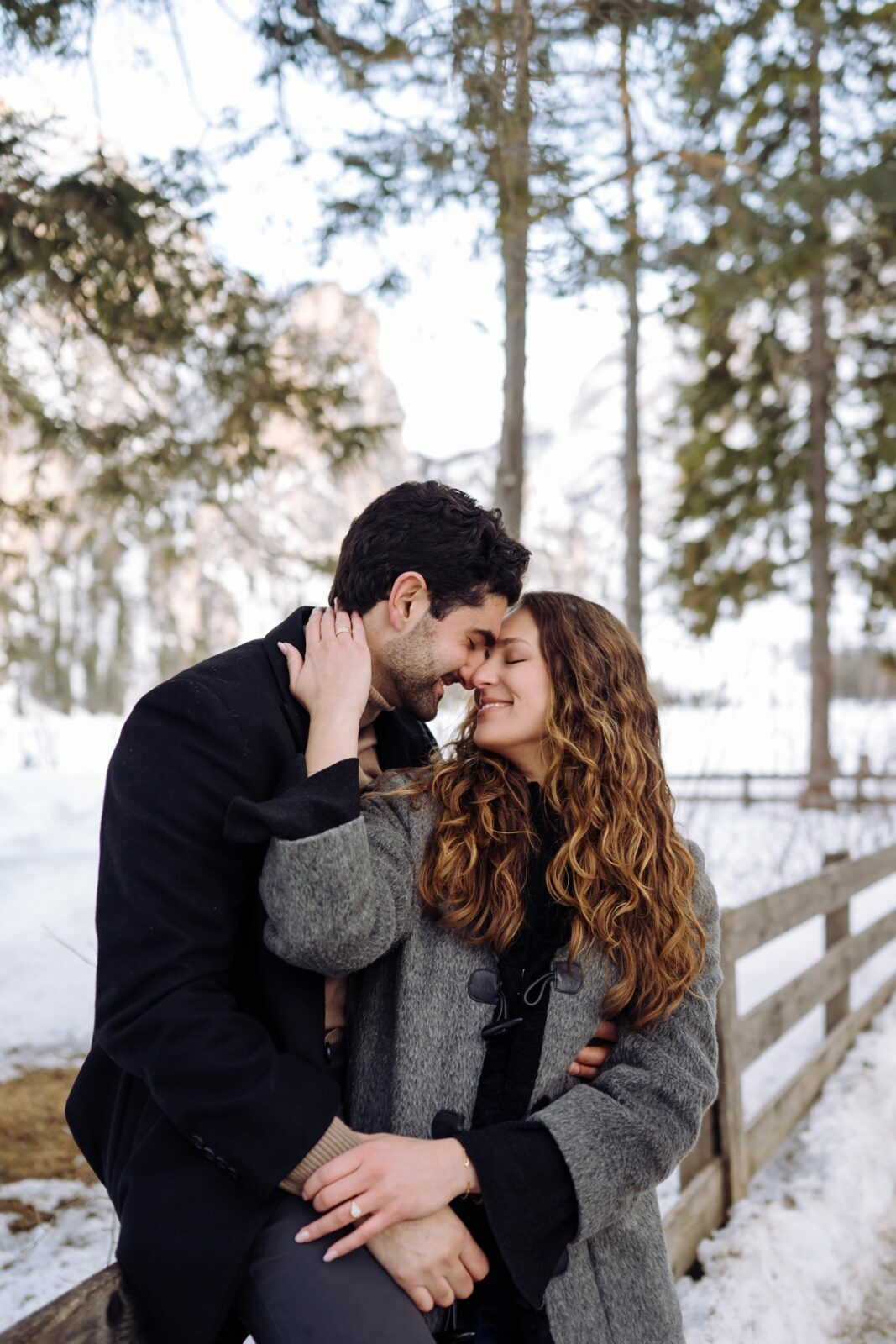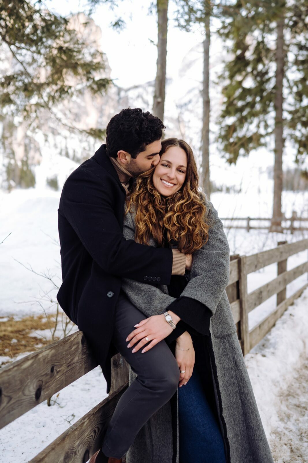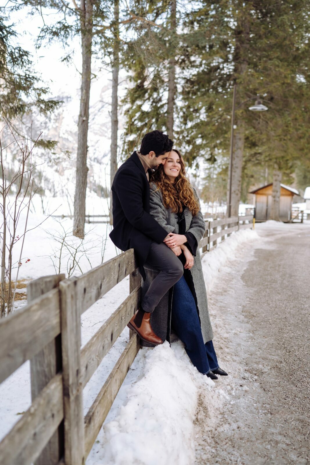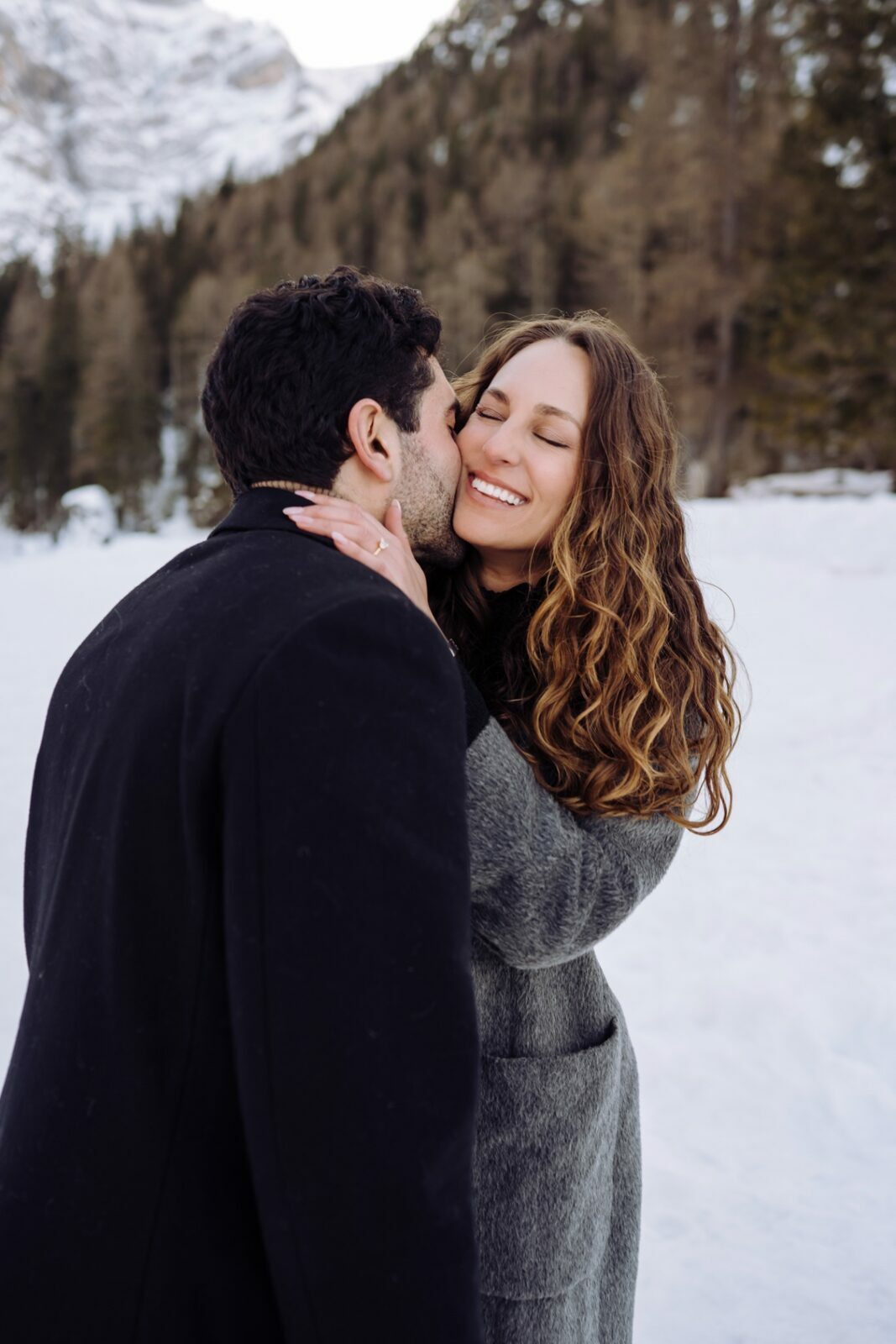 Pedido de casamento sobre o congelado Lago di Braies, nas Dolomitas