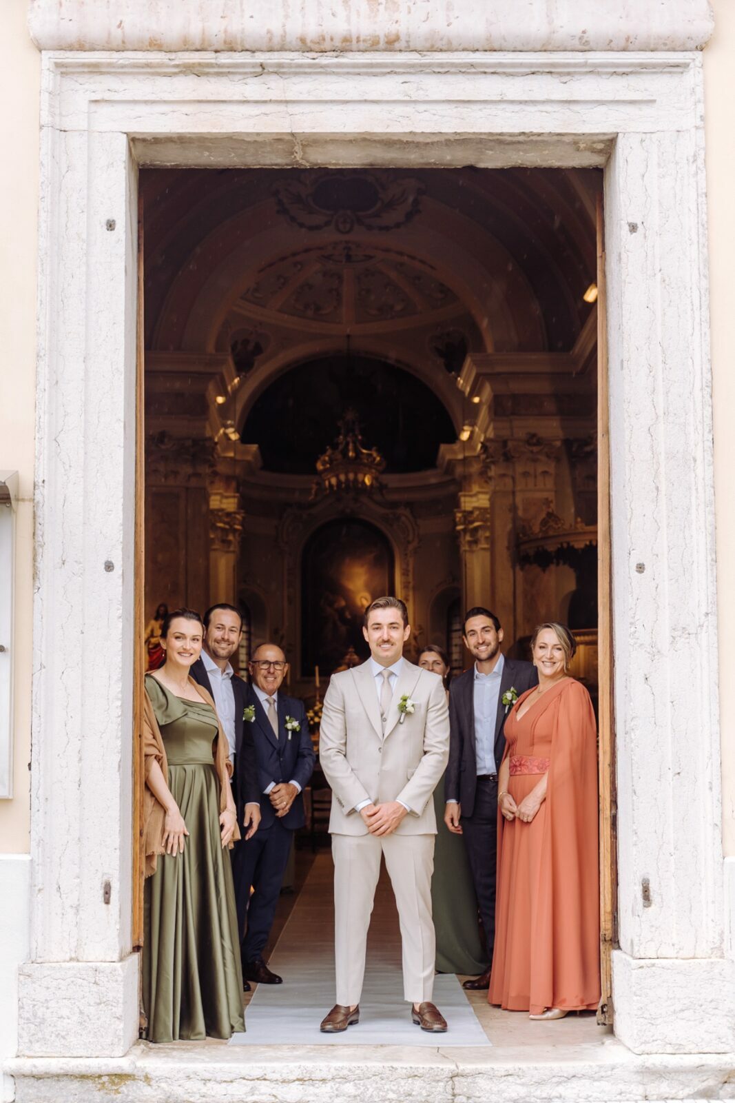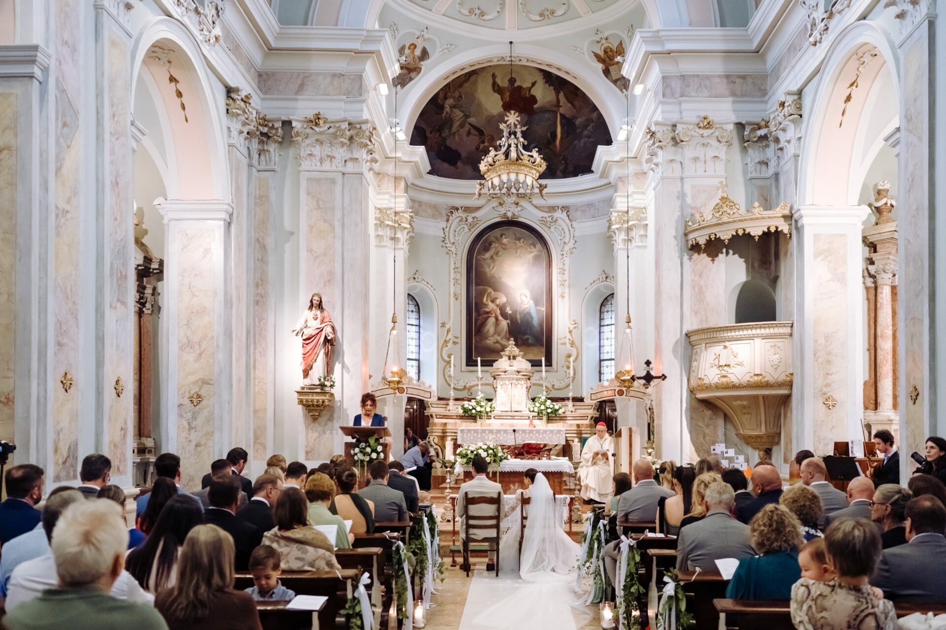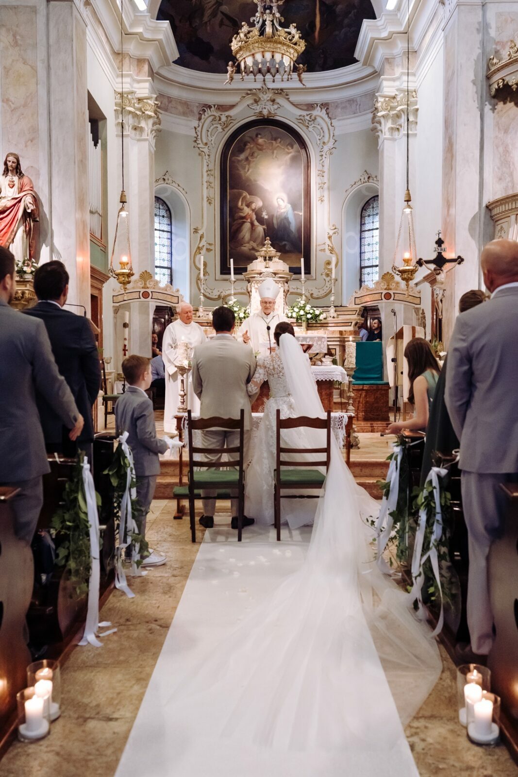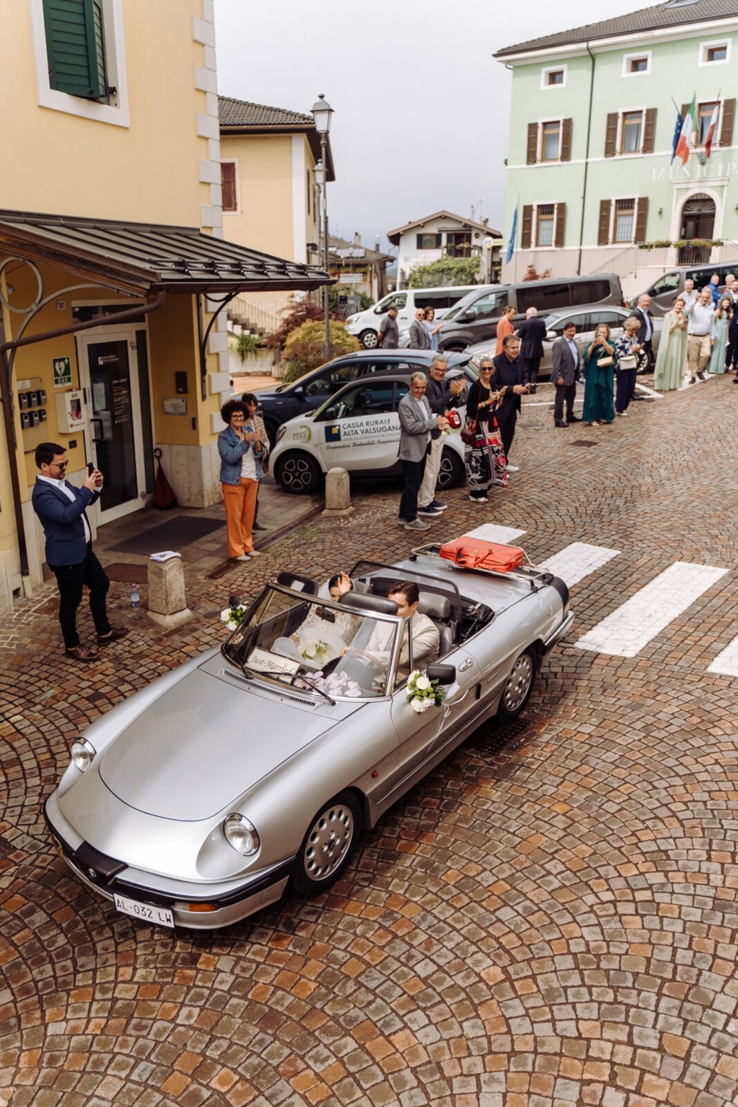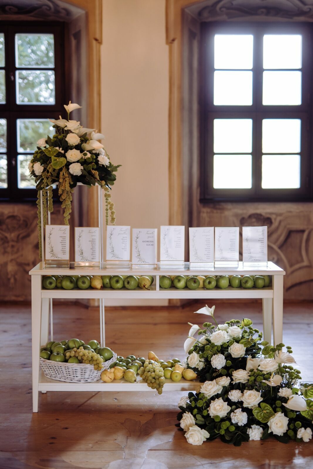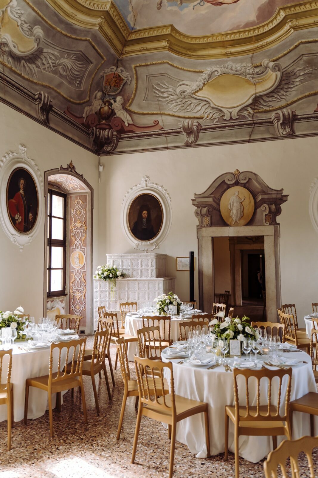 Casamento na terra dos antepassados do noivo, autêntico e emocionante. Cerimônia na igreja, na província de Trento, e recepção na Villa Bortolazzi, cercada por montanhas e parreirais. Destaque pro almoço em uma sala cheia de afrescos animado por um trio de músicas típicas italianas