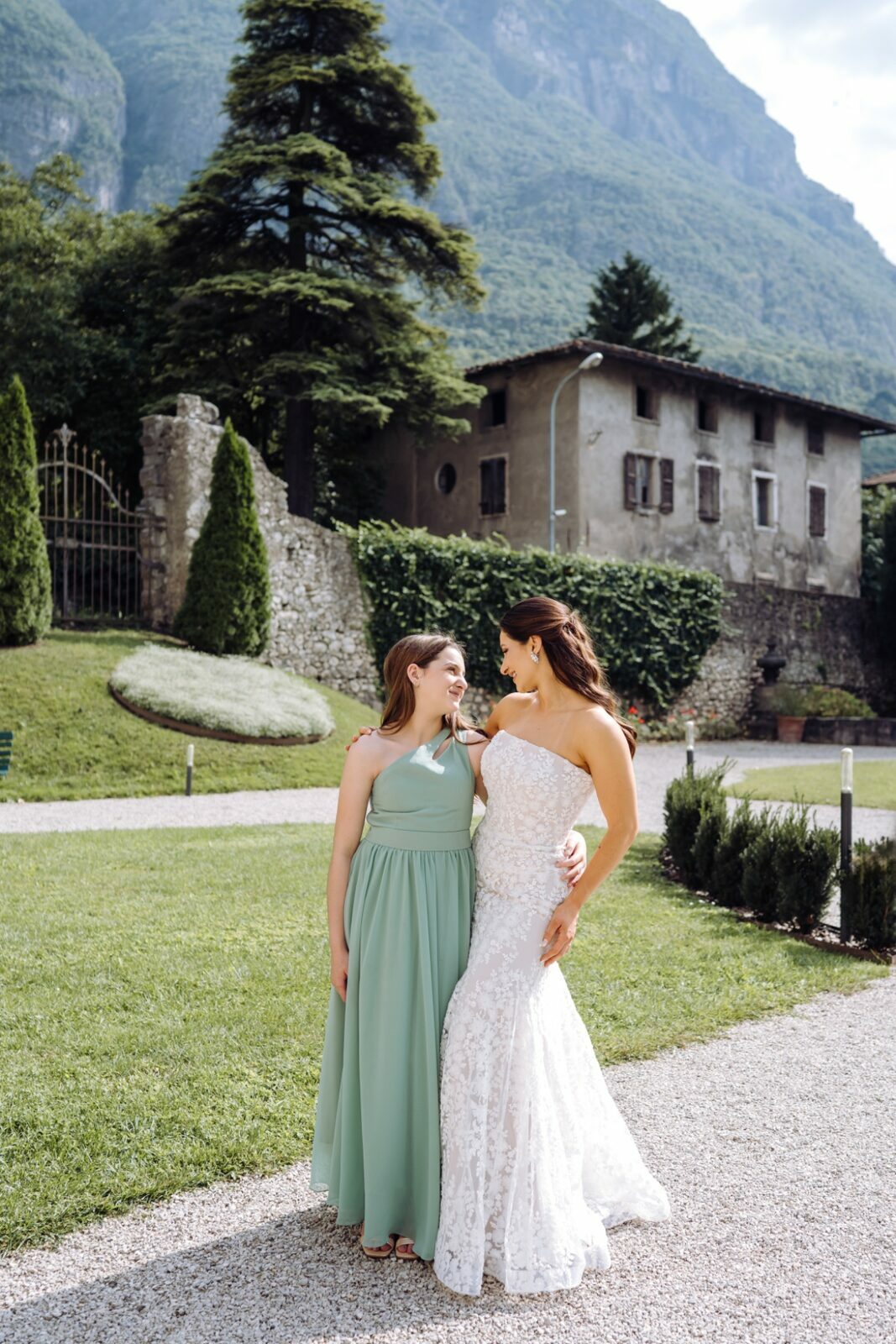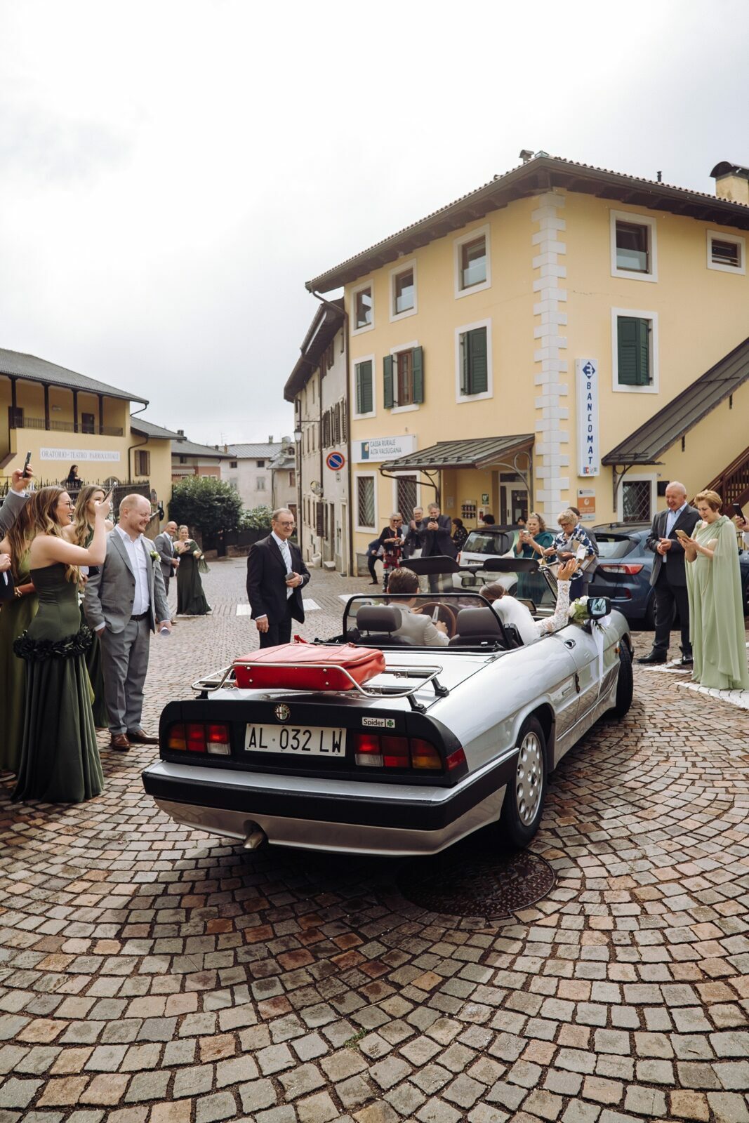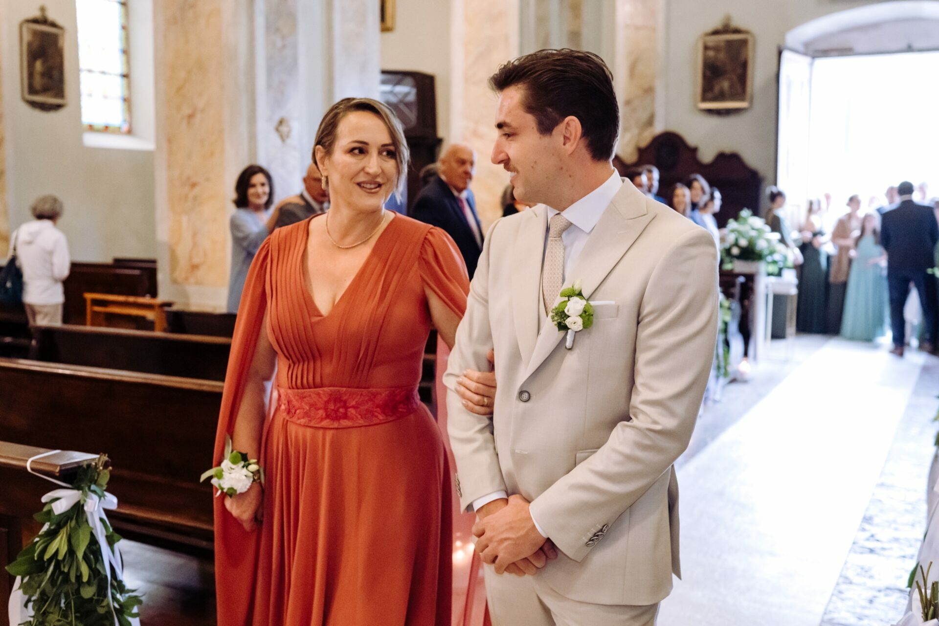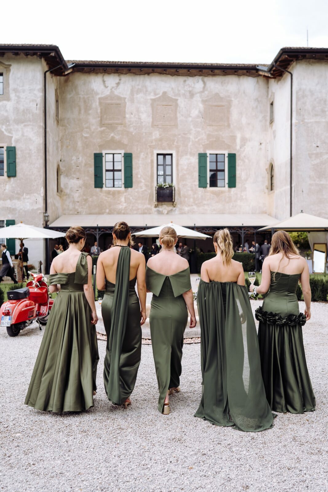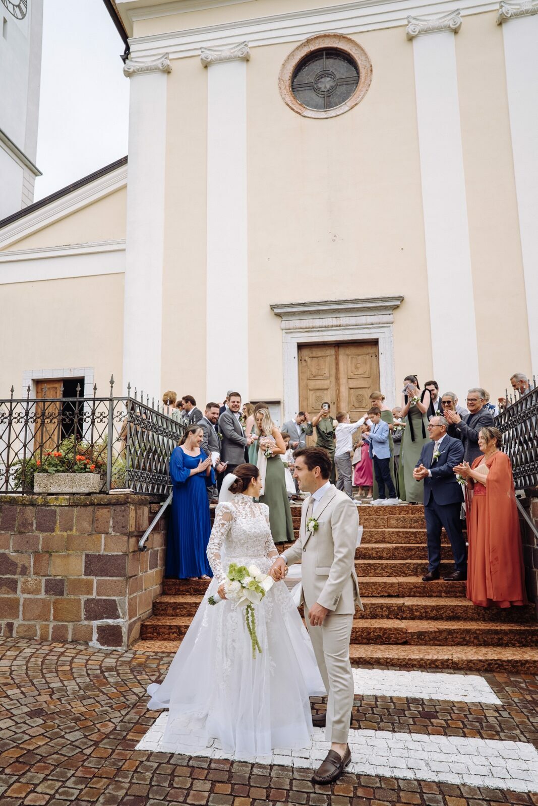 Casamento na terra dos antepassados do noivo, autêntico e emocionante. Cerimônia na igreja, na província de Trento, e recepção na Villa Bortolazzi, cercada por montanhas e parreirais. Destaque pro almoço em uma sala cheia de afrescos animado por um trio de músicas típicas italianas