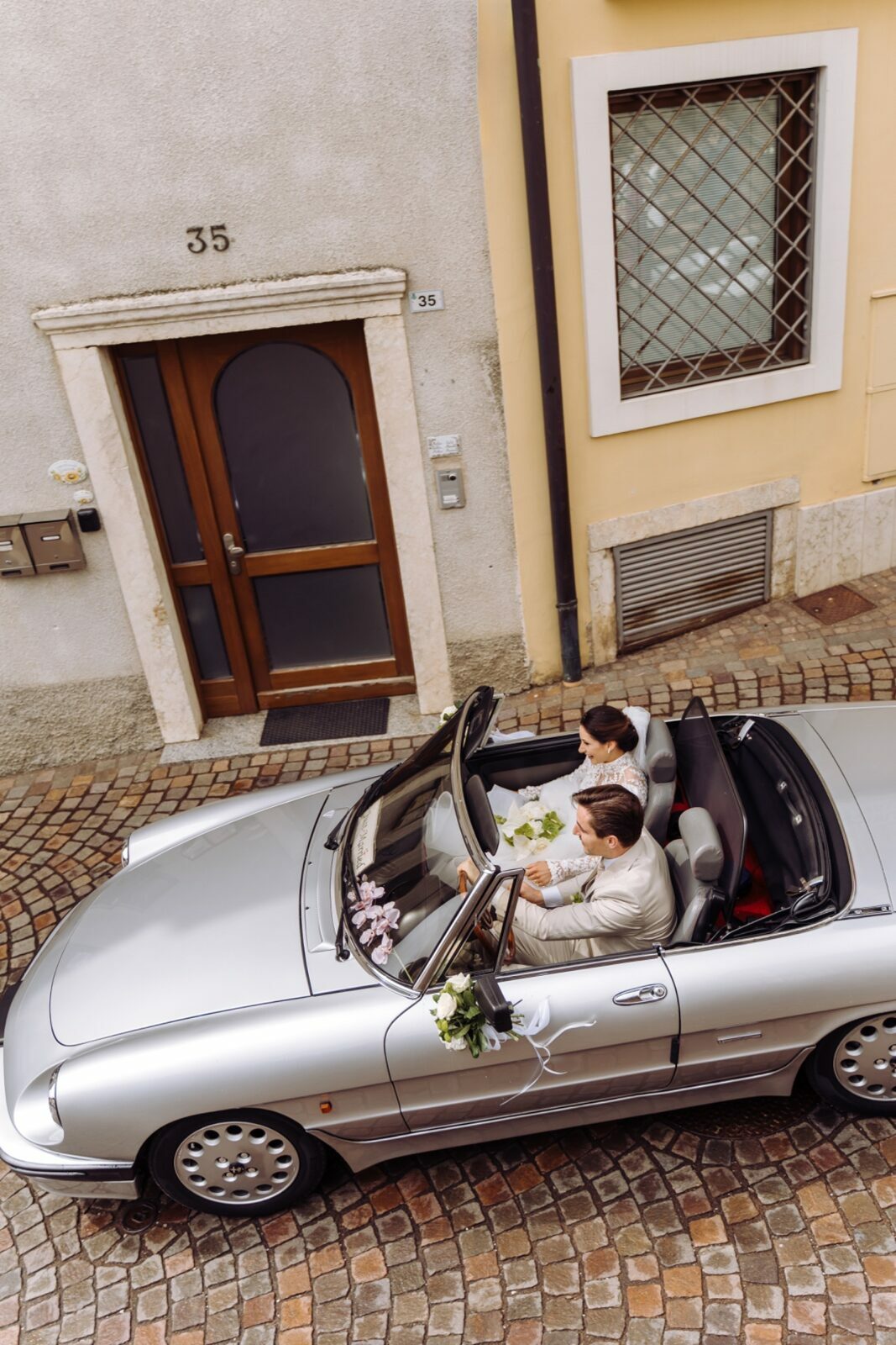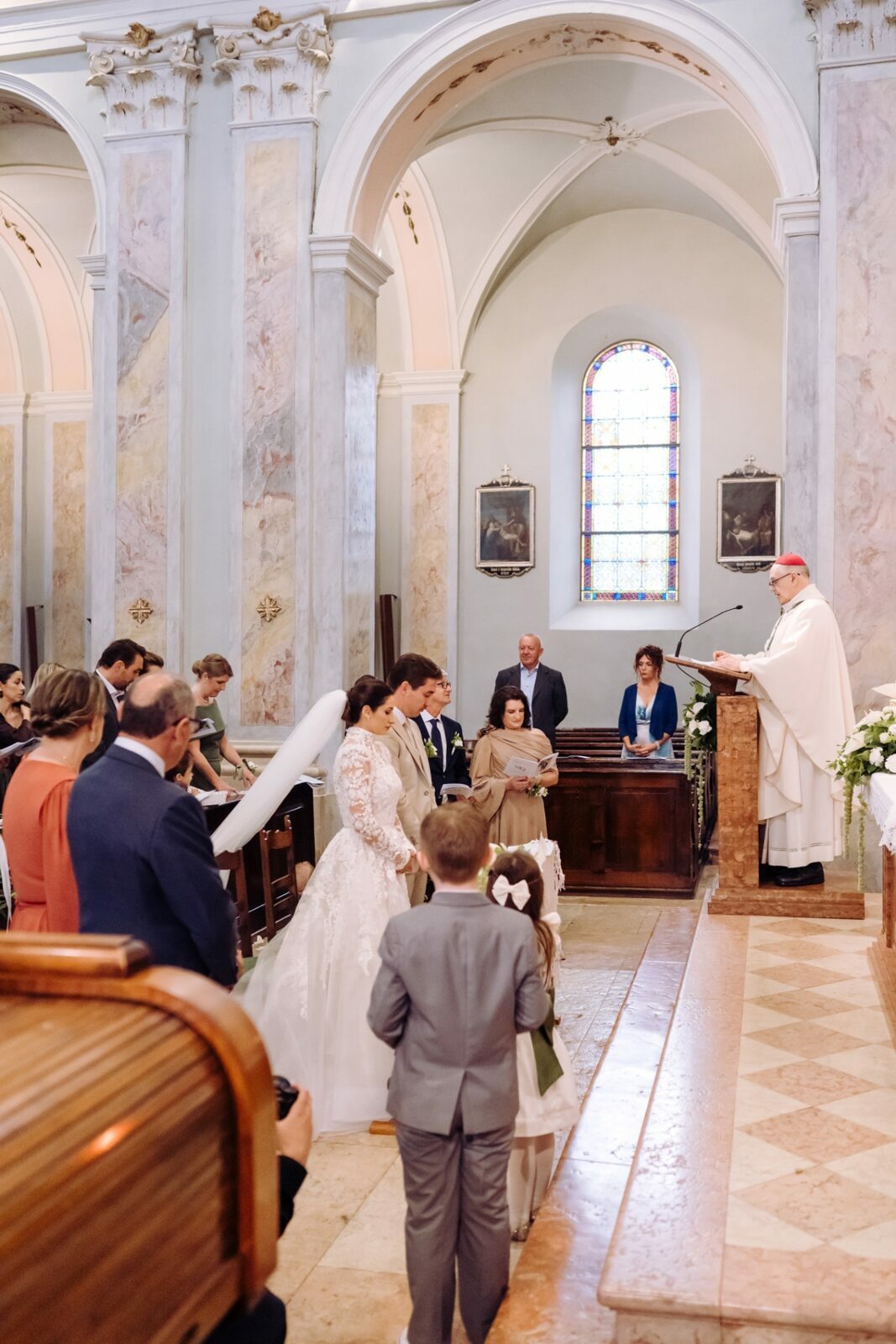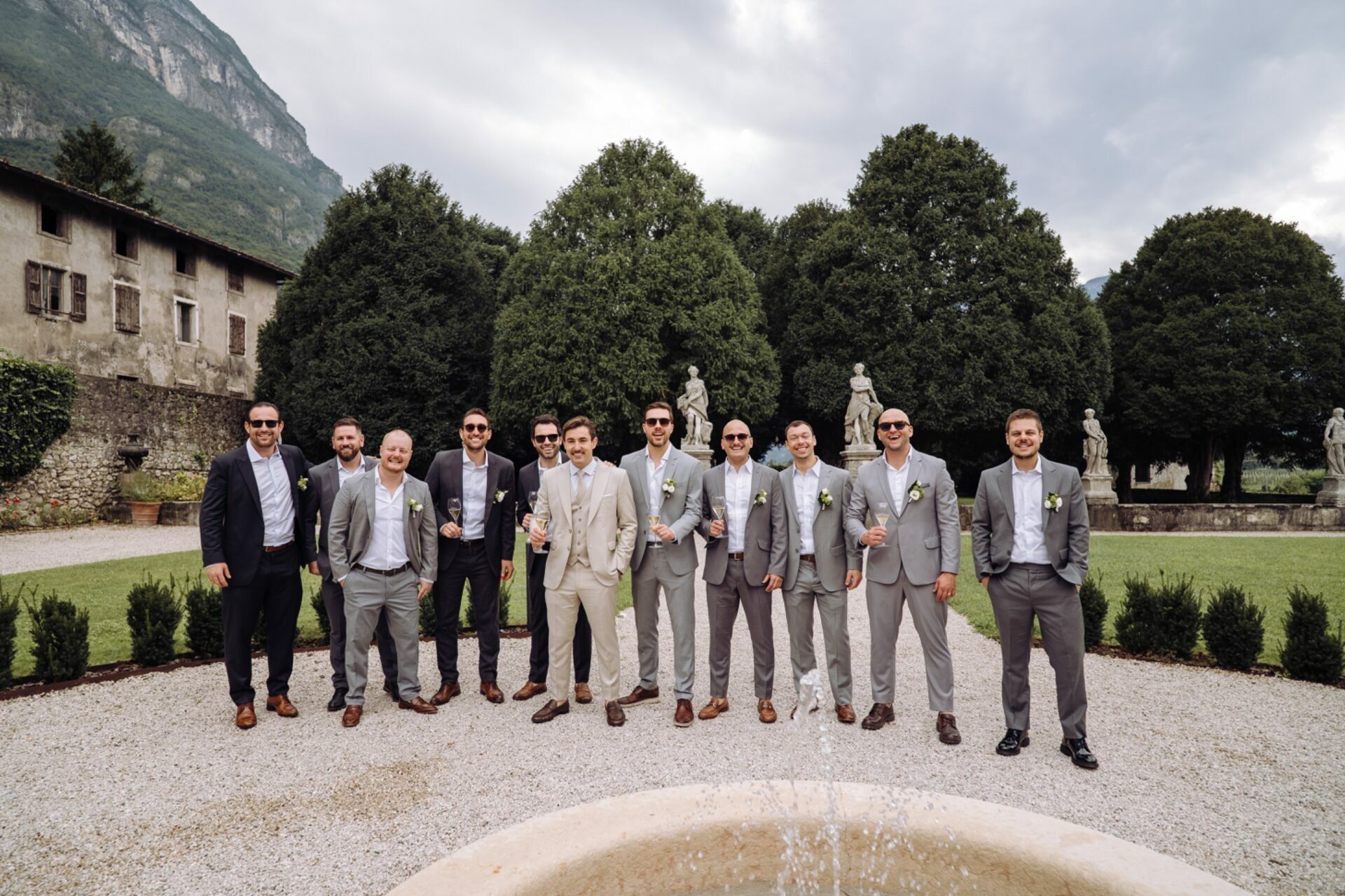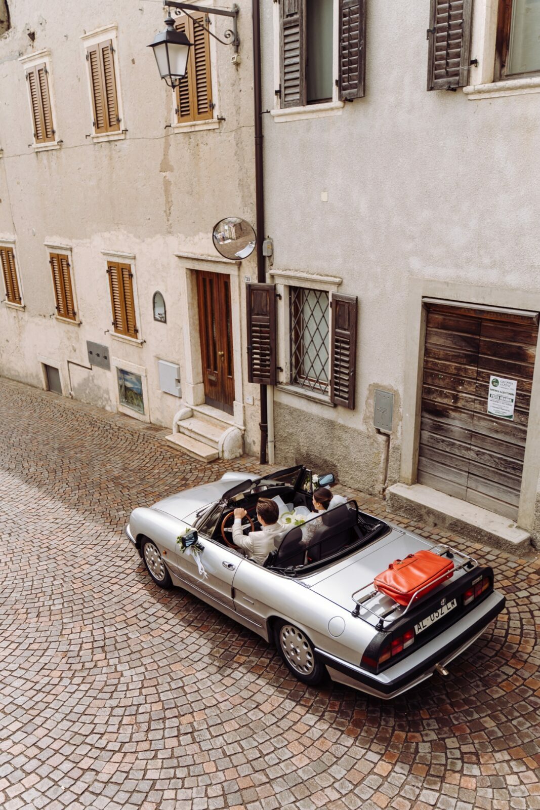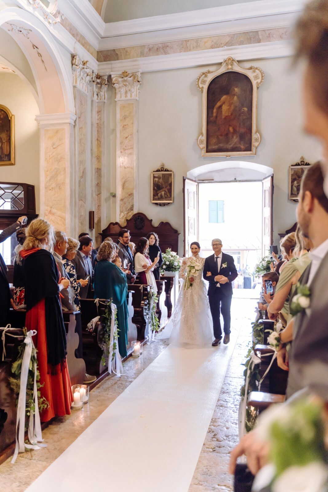 Casamento na terra dos antepassados do noivo, autêntico e emocionante. Cerimônia na igreja, na província de Trento, e recepção na Villa Bortolazzi, cercada por montanhas e parreirais. Destaque pro almoço em uma sala cheia de afrescos animado por um trio de músicas típicas italianas