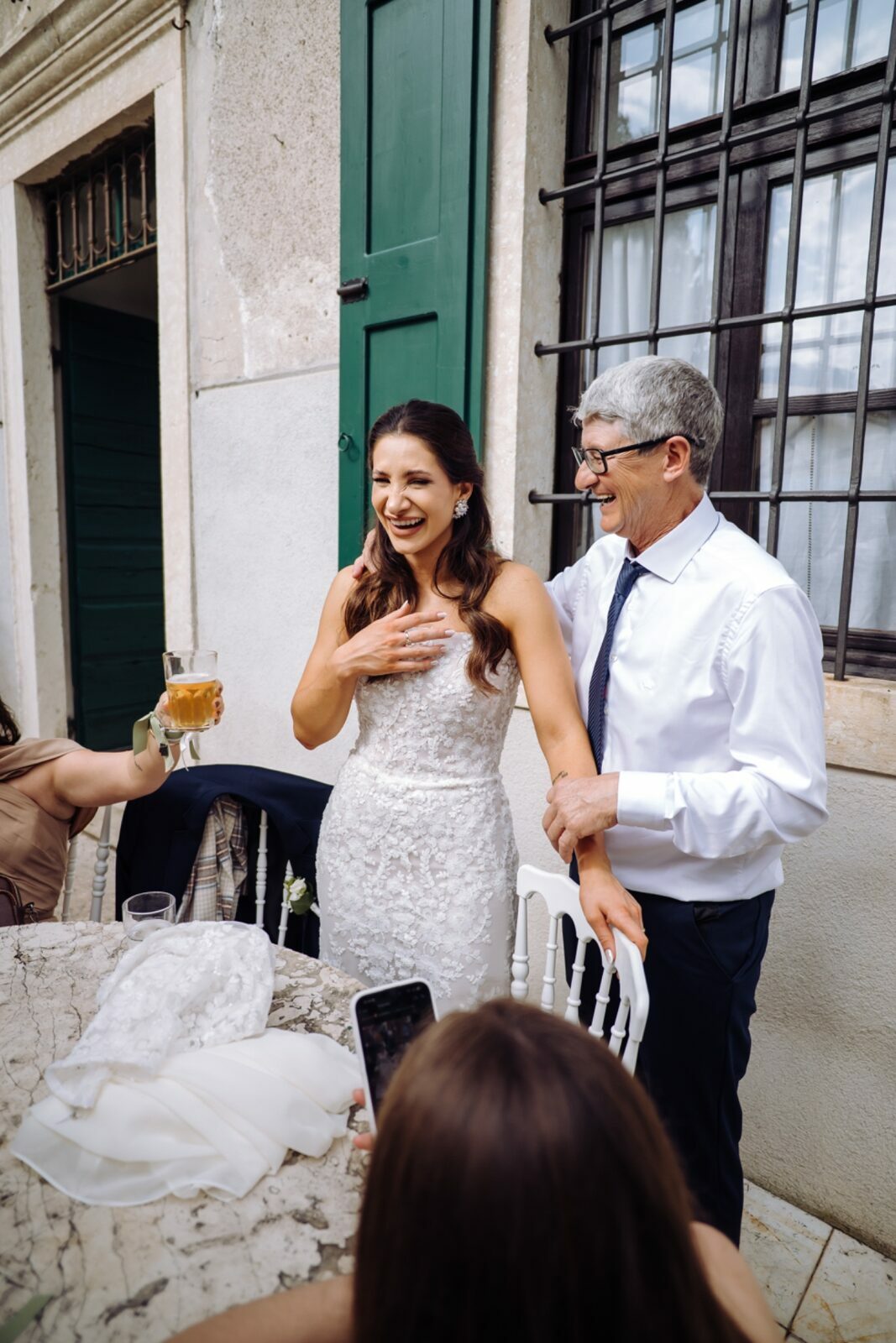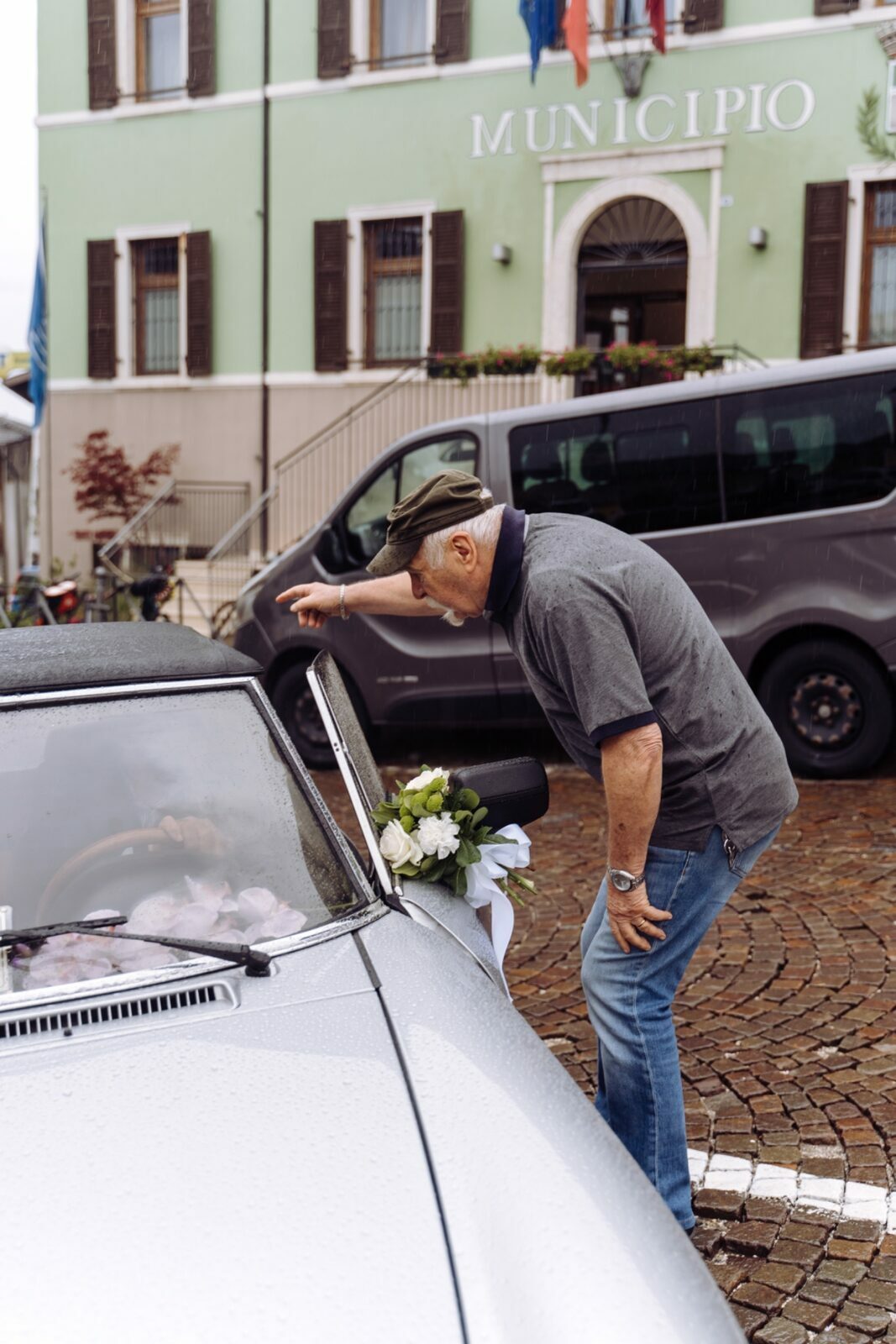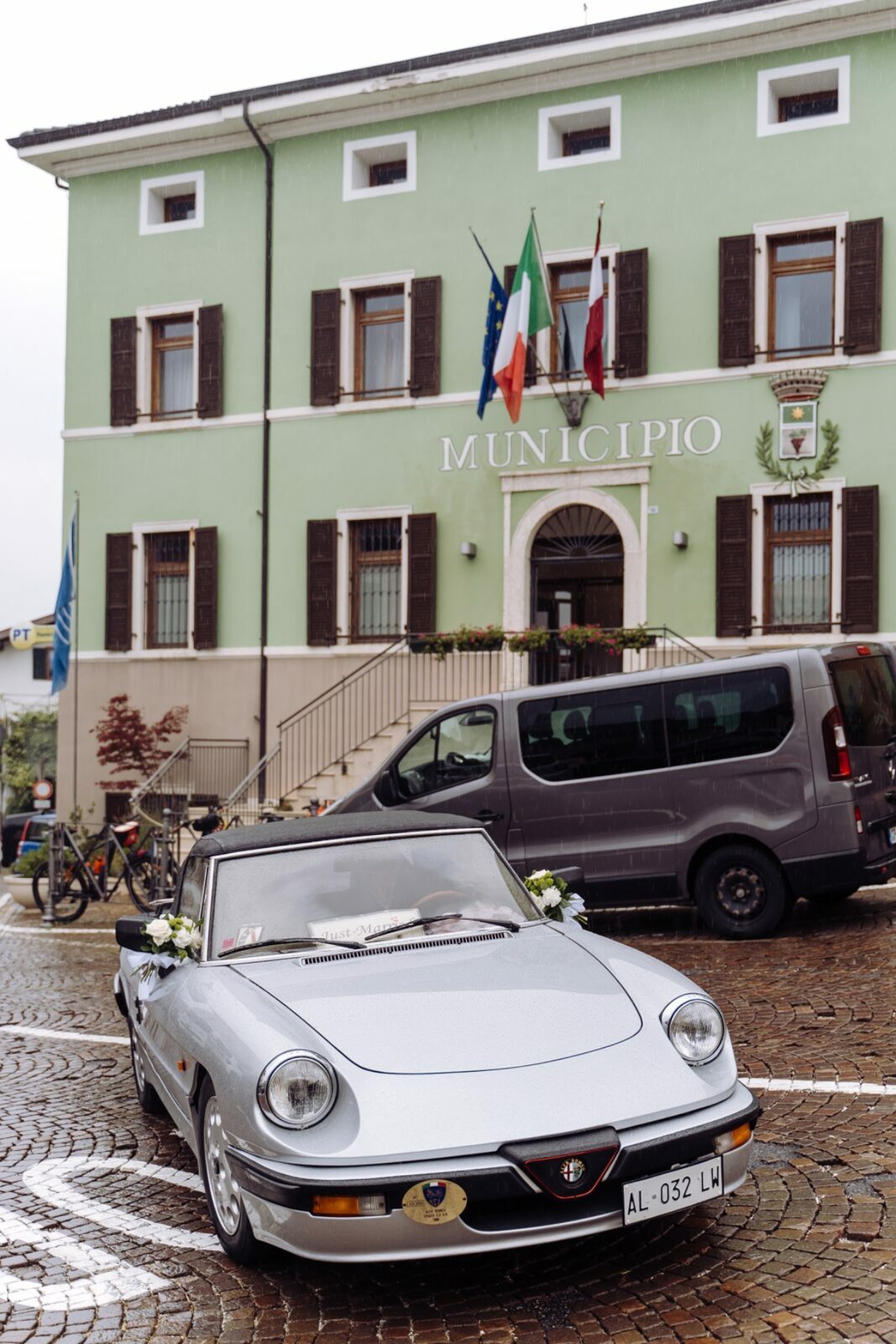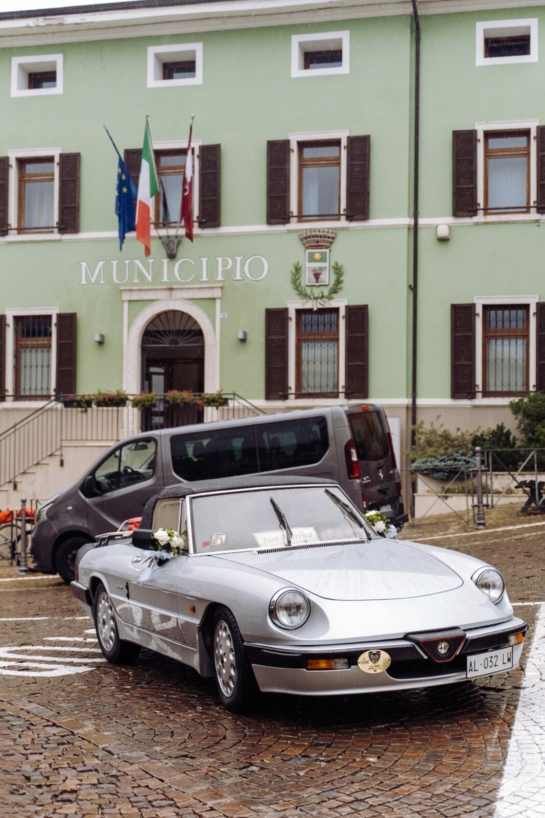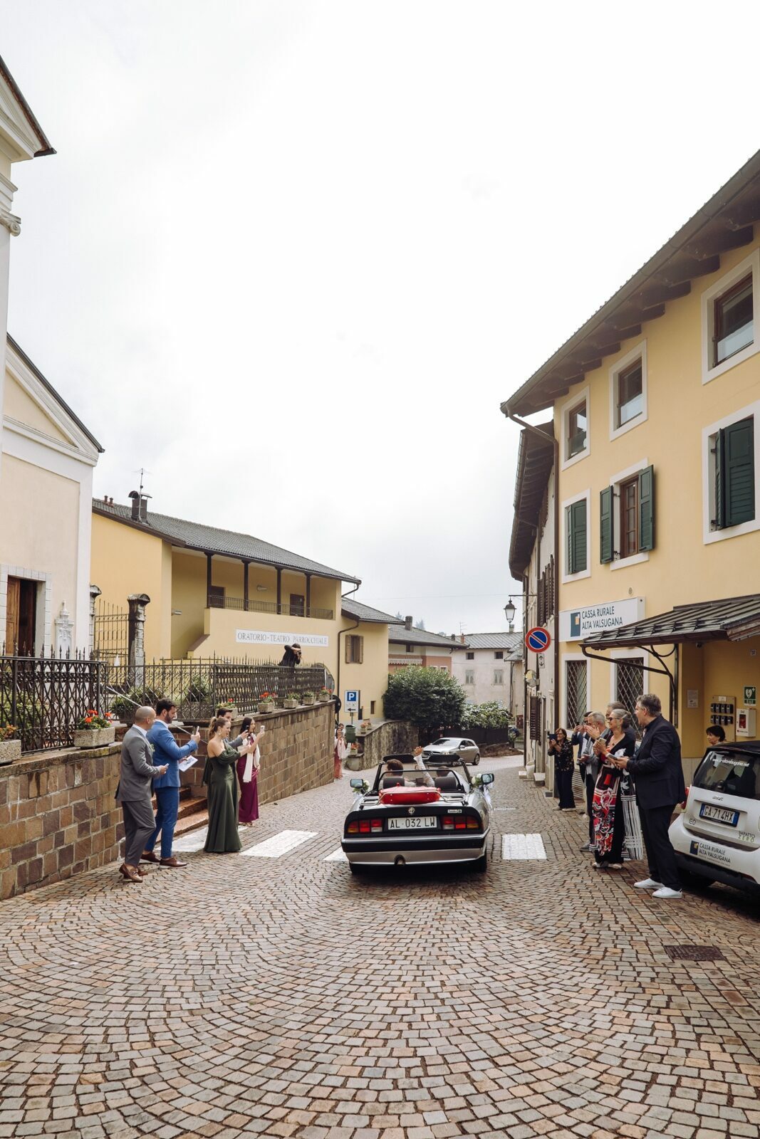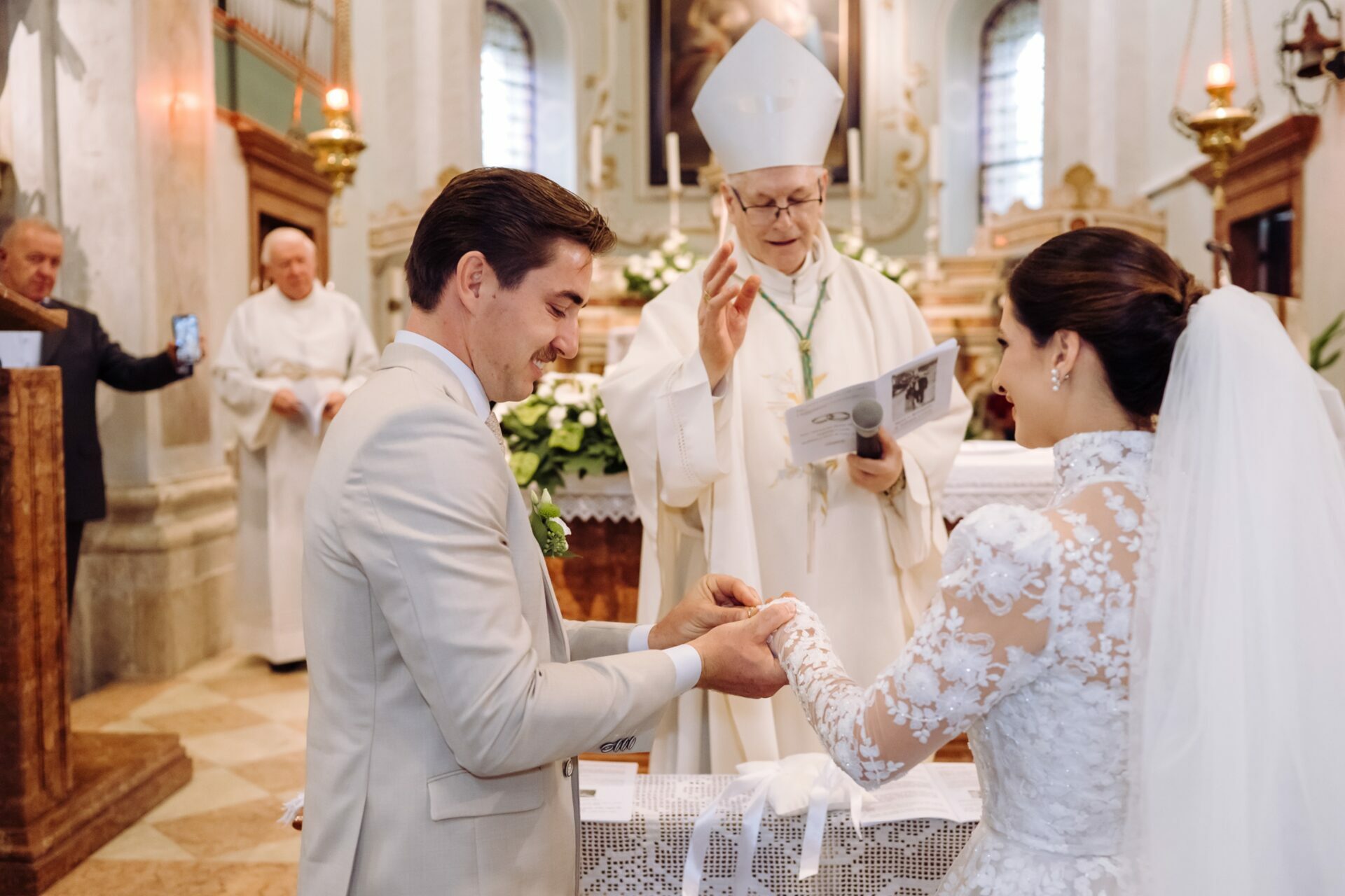 Casamento na terra dos antepassados do noivo, autêntico e emocionante. Cerimônia na igreja, na província de Trento, e recepção na Villa Bortolazzi, cercada por montanhas e parreirais. Destaque pro almoço em uma sala cheia de afrescos animado por um trio de músicas típicas italianas