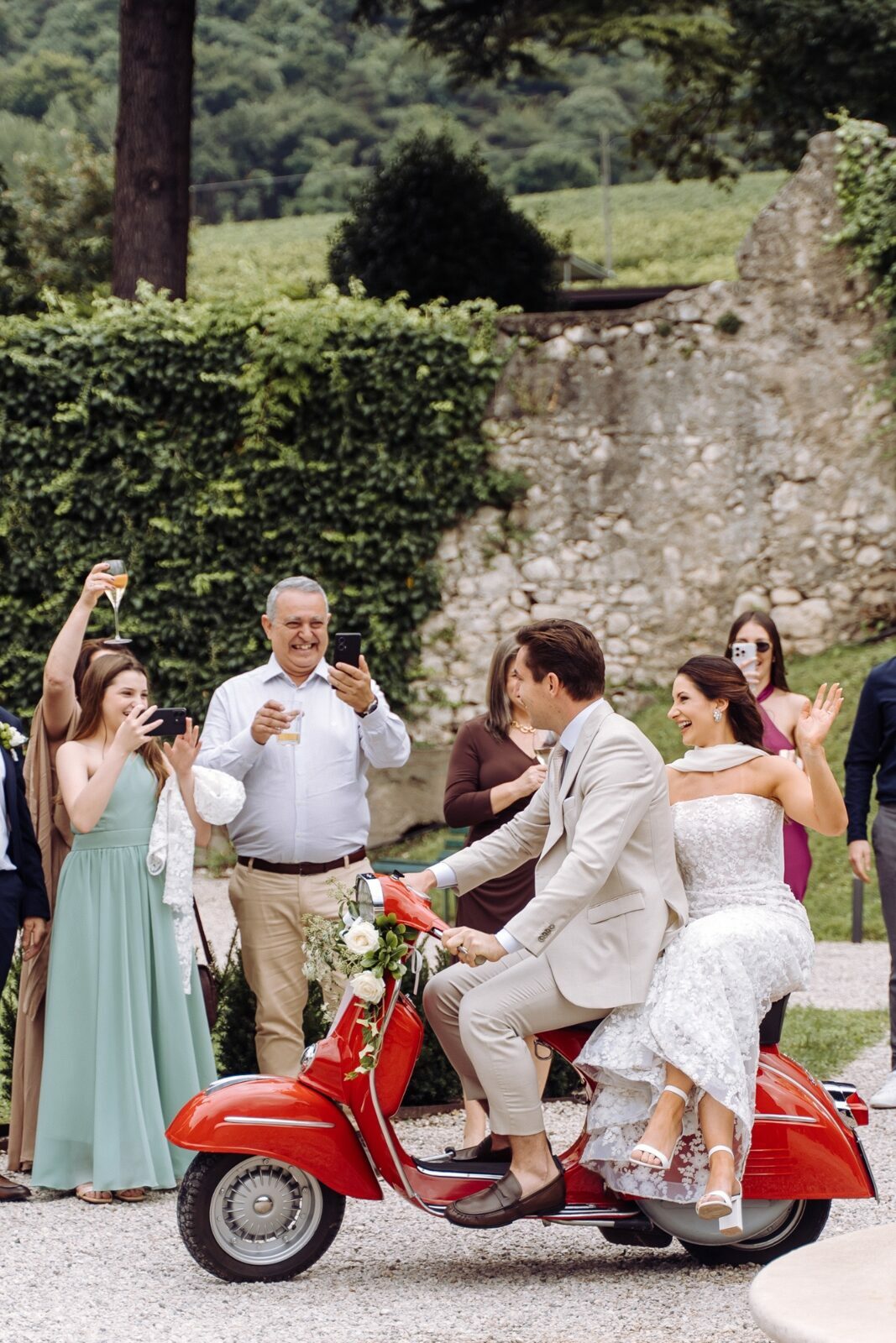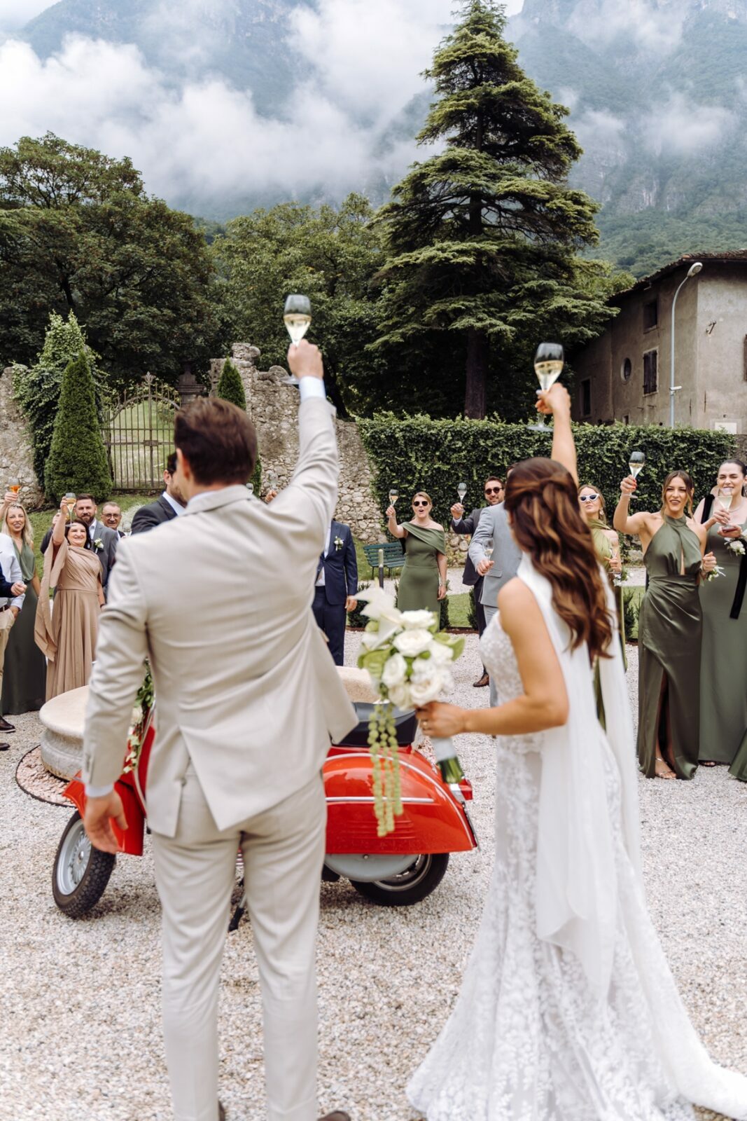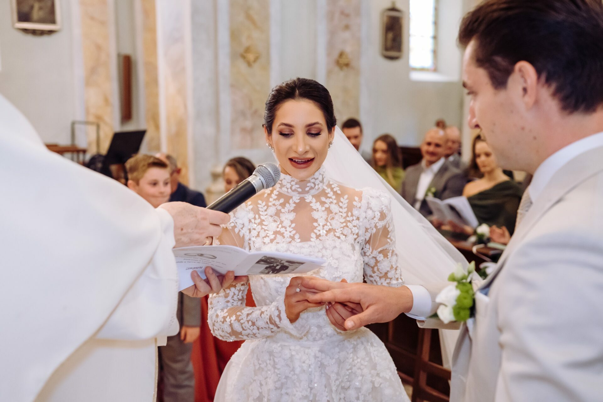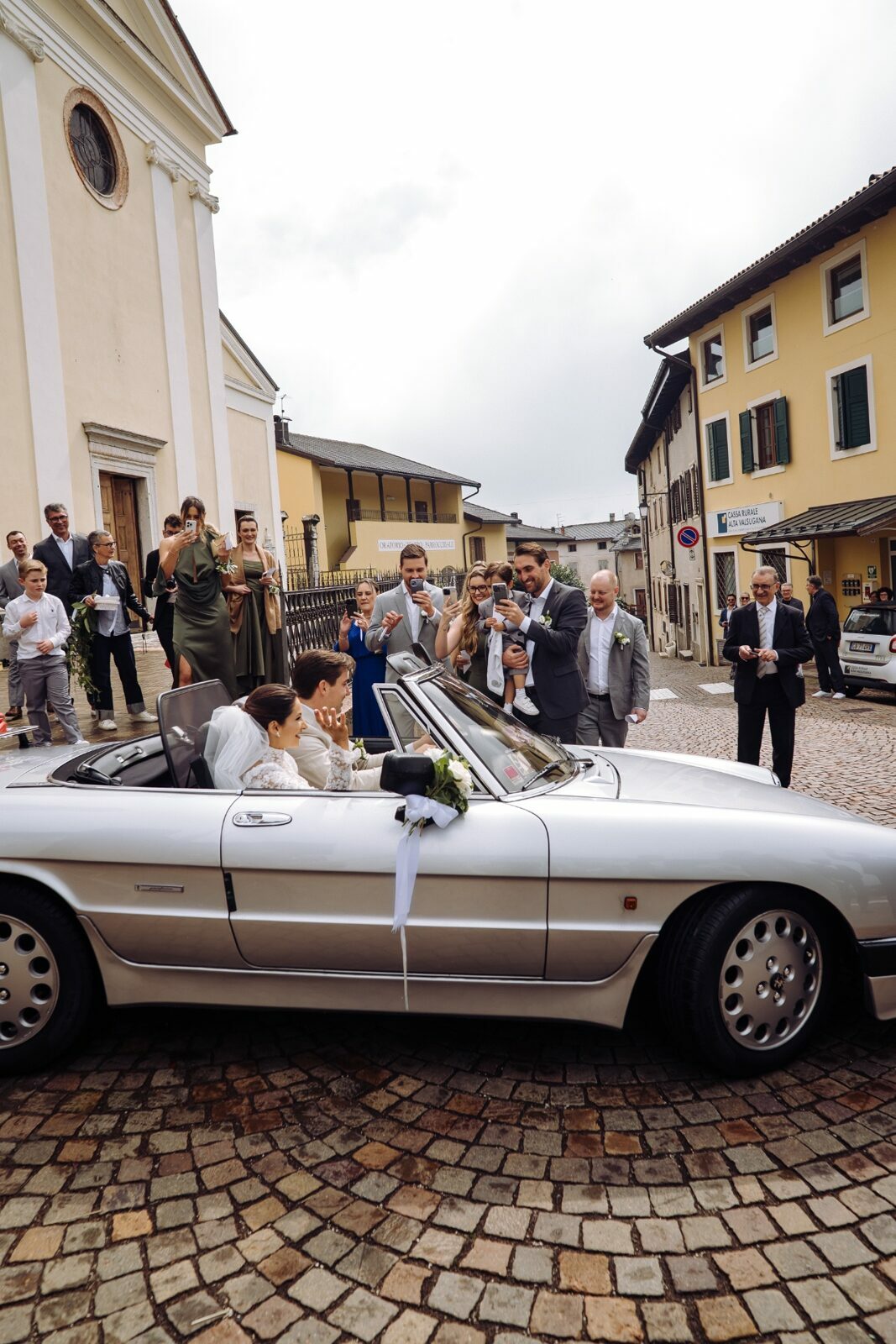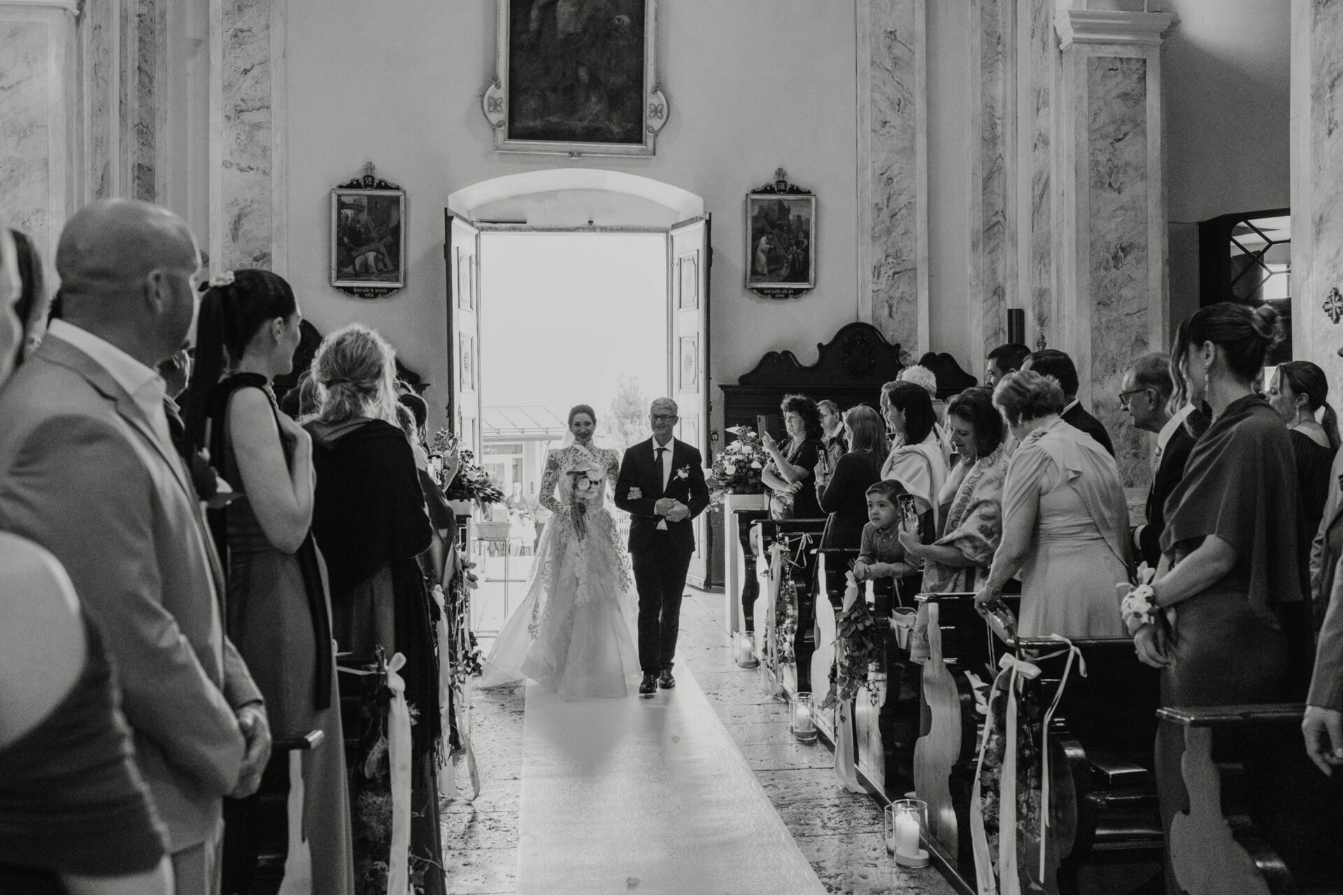 Casamento na terra dos antepassados do noivo, autêntico e emocionante. Cerimônia na igreja, na província de Trento, e recepção na Villa Bortolazzi, cercada por montanhas e parreirais. Destaque pro almoço em uma sala cheia de afrescos animado por um trio de músicas típicas italianas
