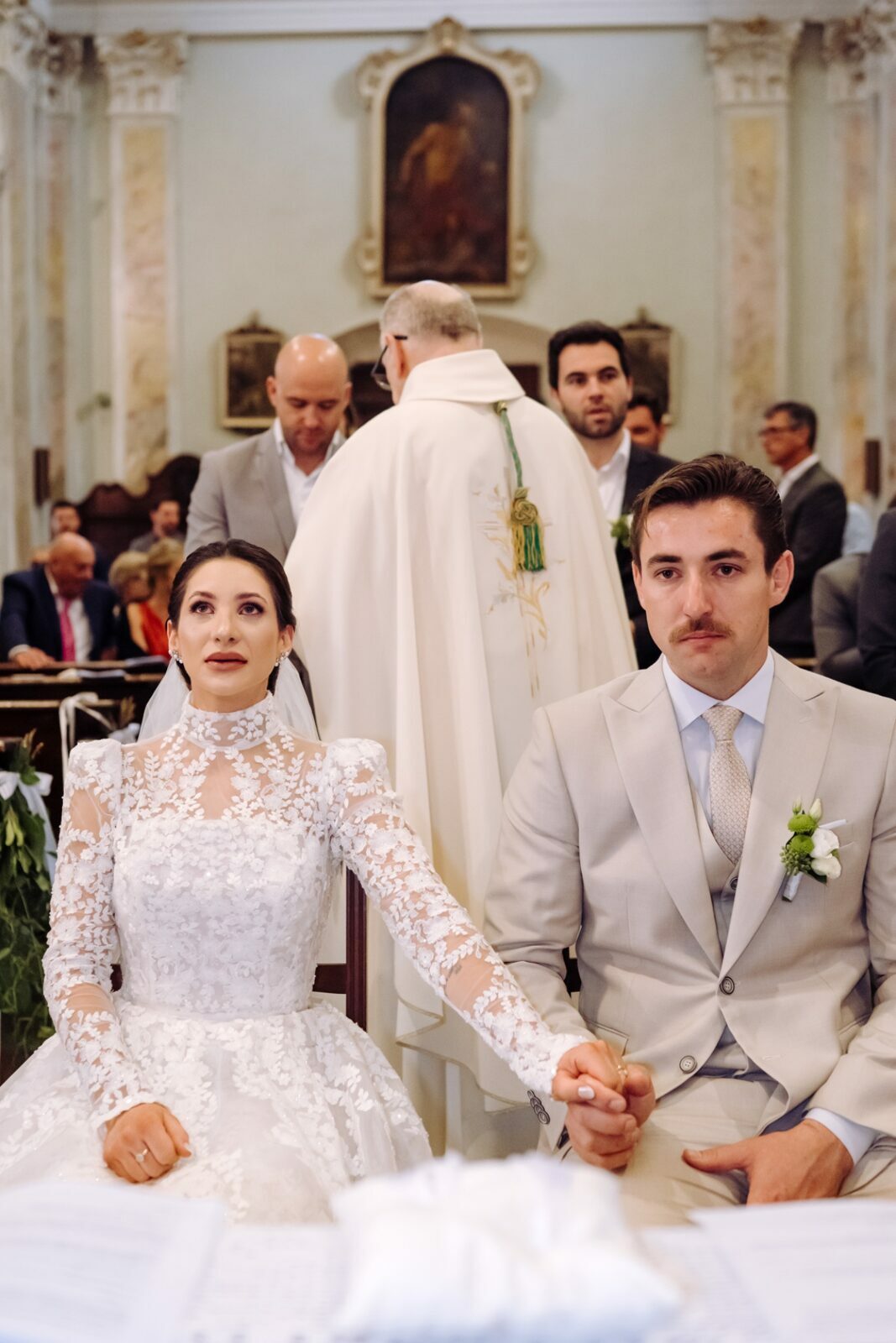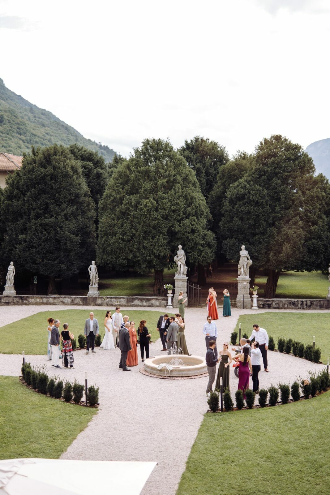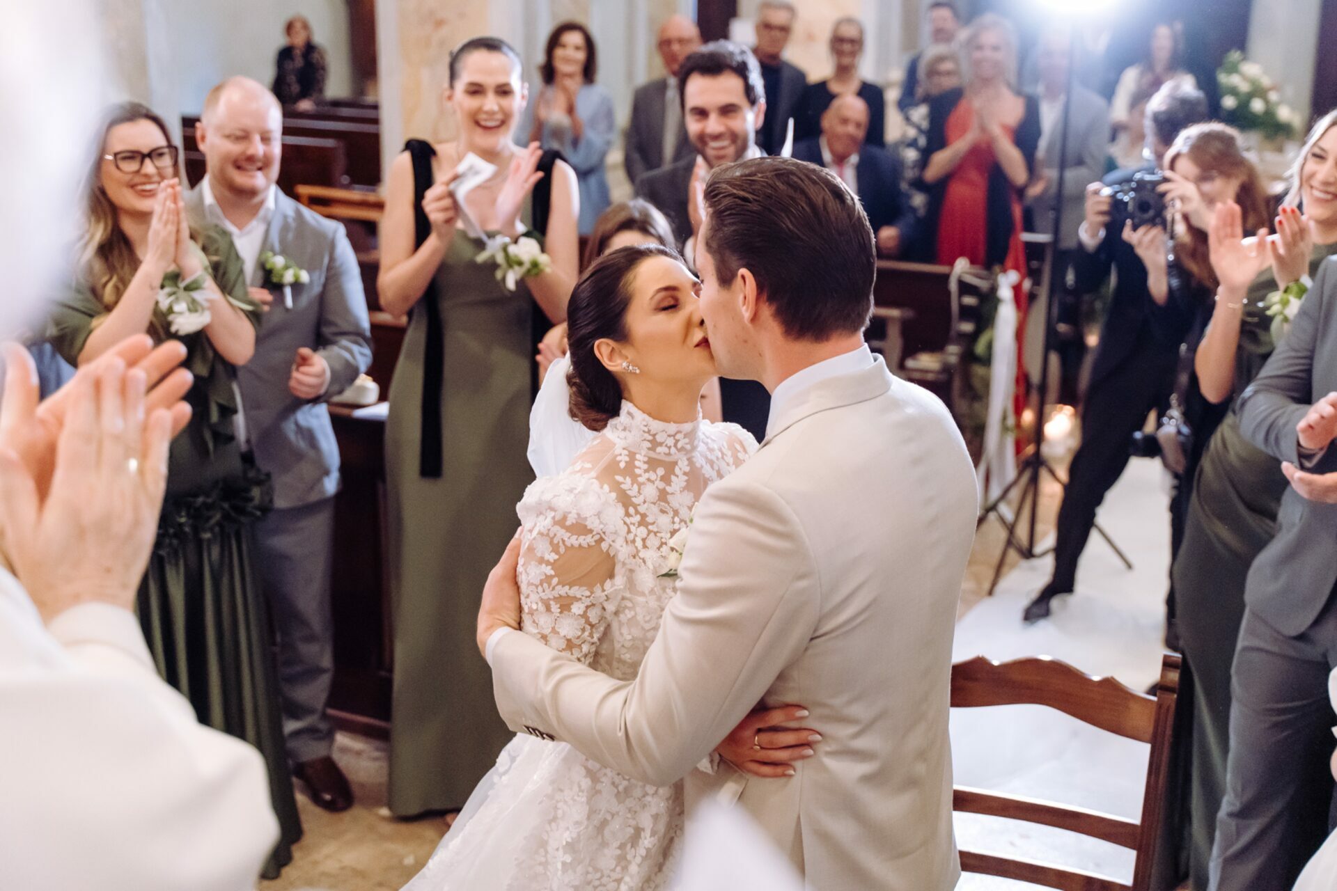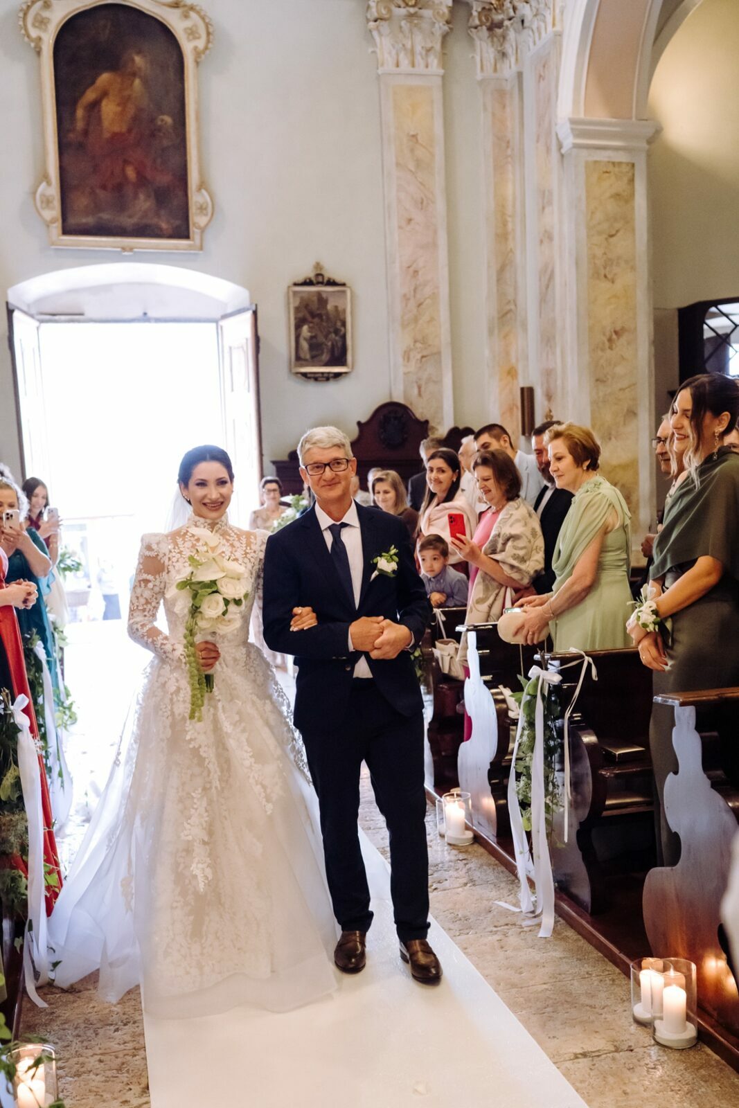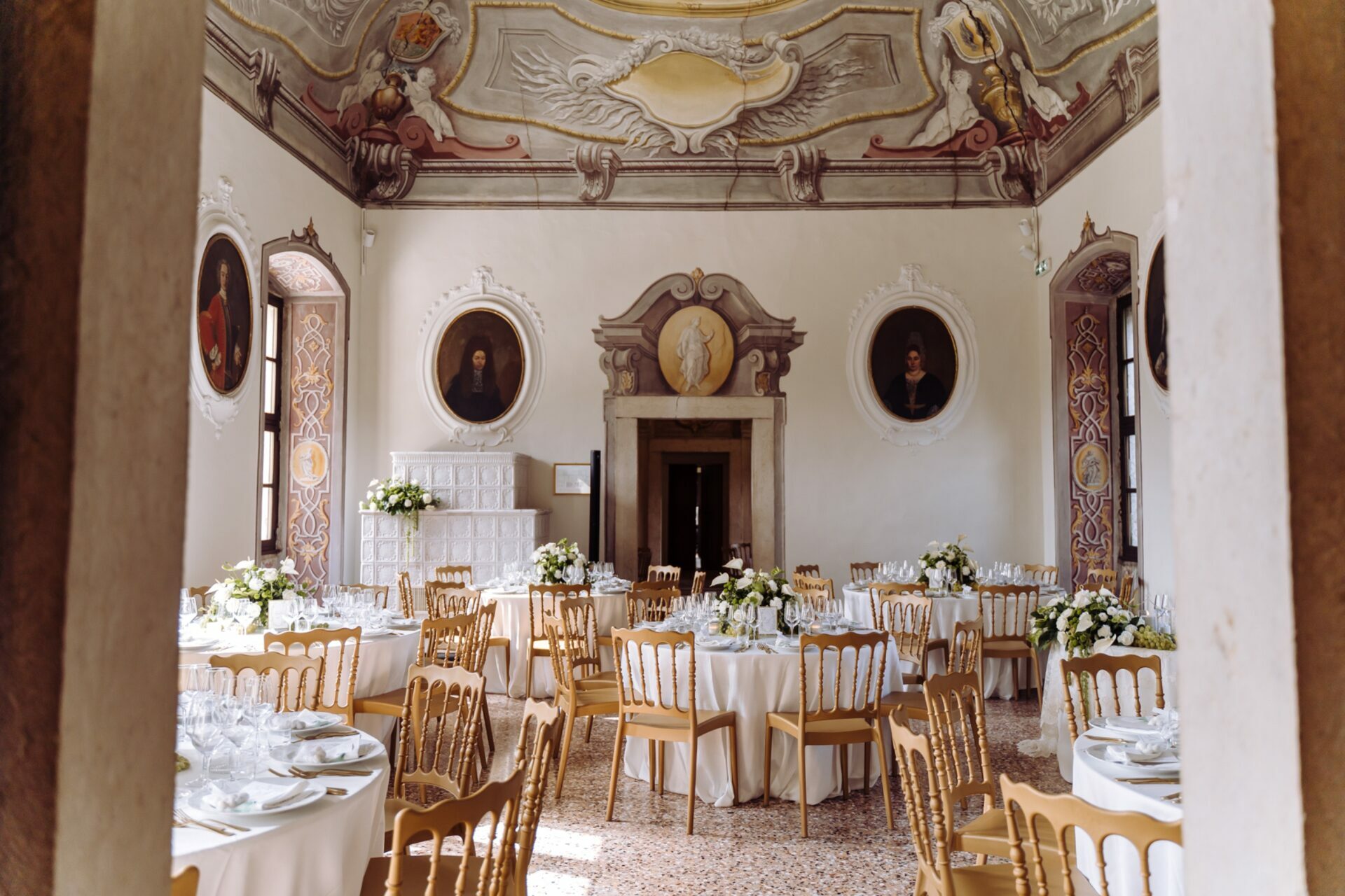 Casamento na terra dos antepassados do noivo, autêntico e emocionante. Cerimônia na igreja, na província de Trento, e recepção na Villa Bortolazzi, cercada por montanhas e parreirais. Destaque pro almoço em uma sala cheia de afrescos animado por um trio de músicas típicas italianas