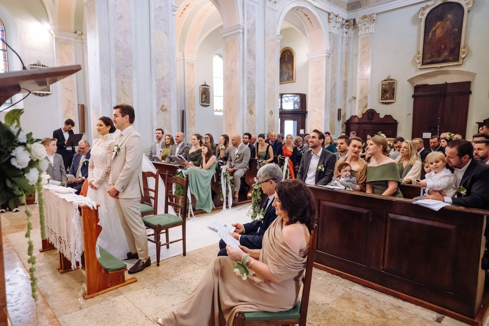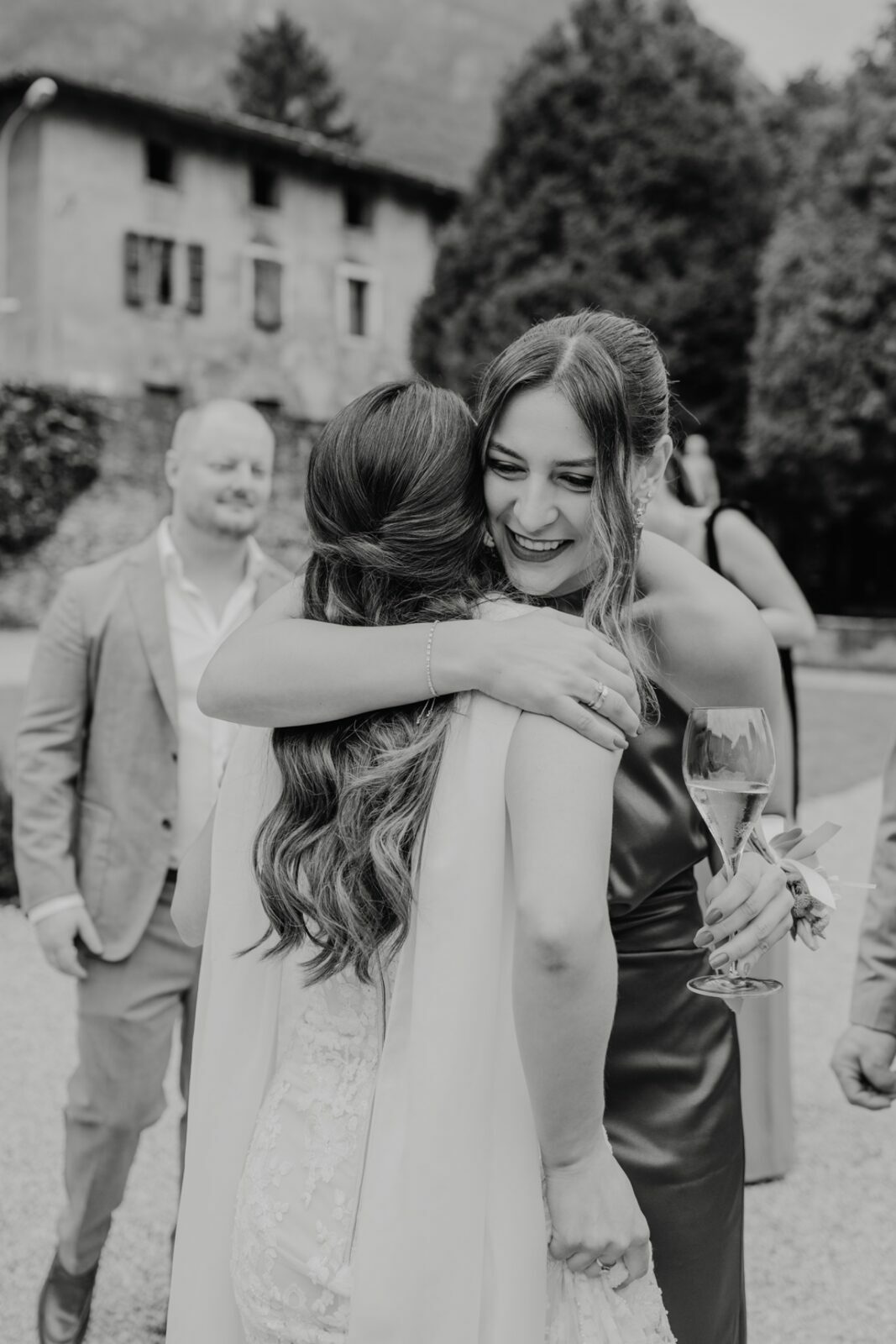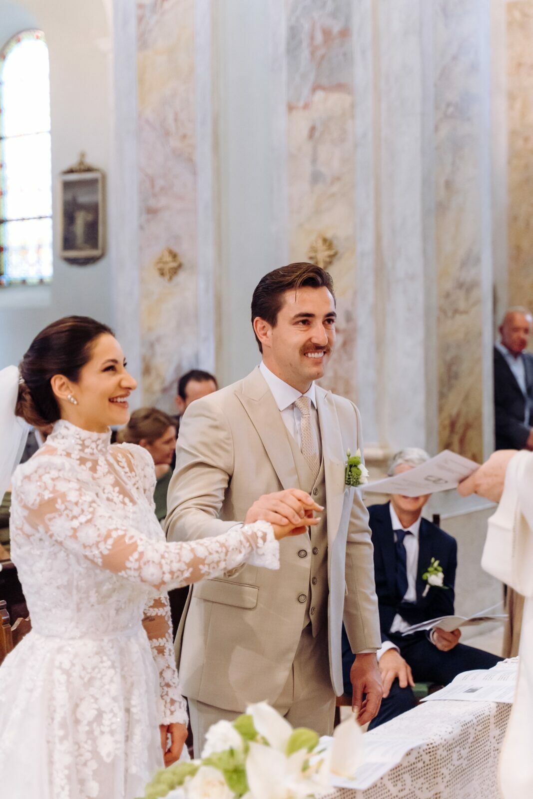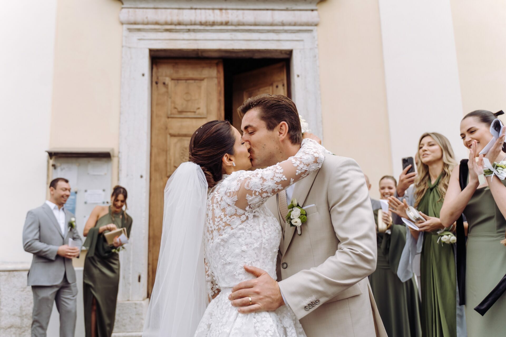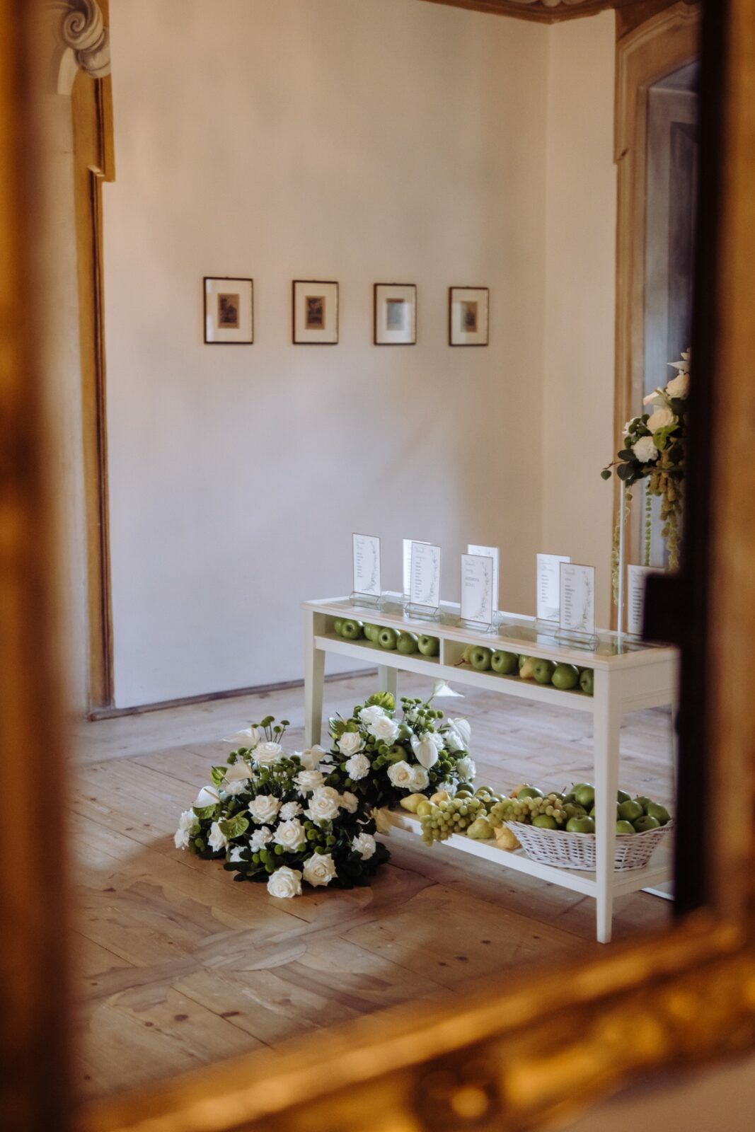 Casamento na terra dos antepassados do noivo, autêntico e emocionante. Cerimônia na igreja, na província de Trento, e recepção na Villa Bortolazzi, cercada por montanhas e parreirais. Destaque pro almoço em uma sala cheia de afrescos animado por um trio de músicas típicas italianas