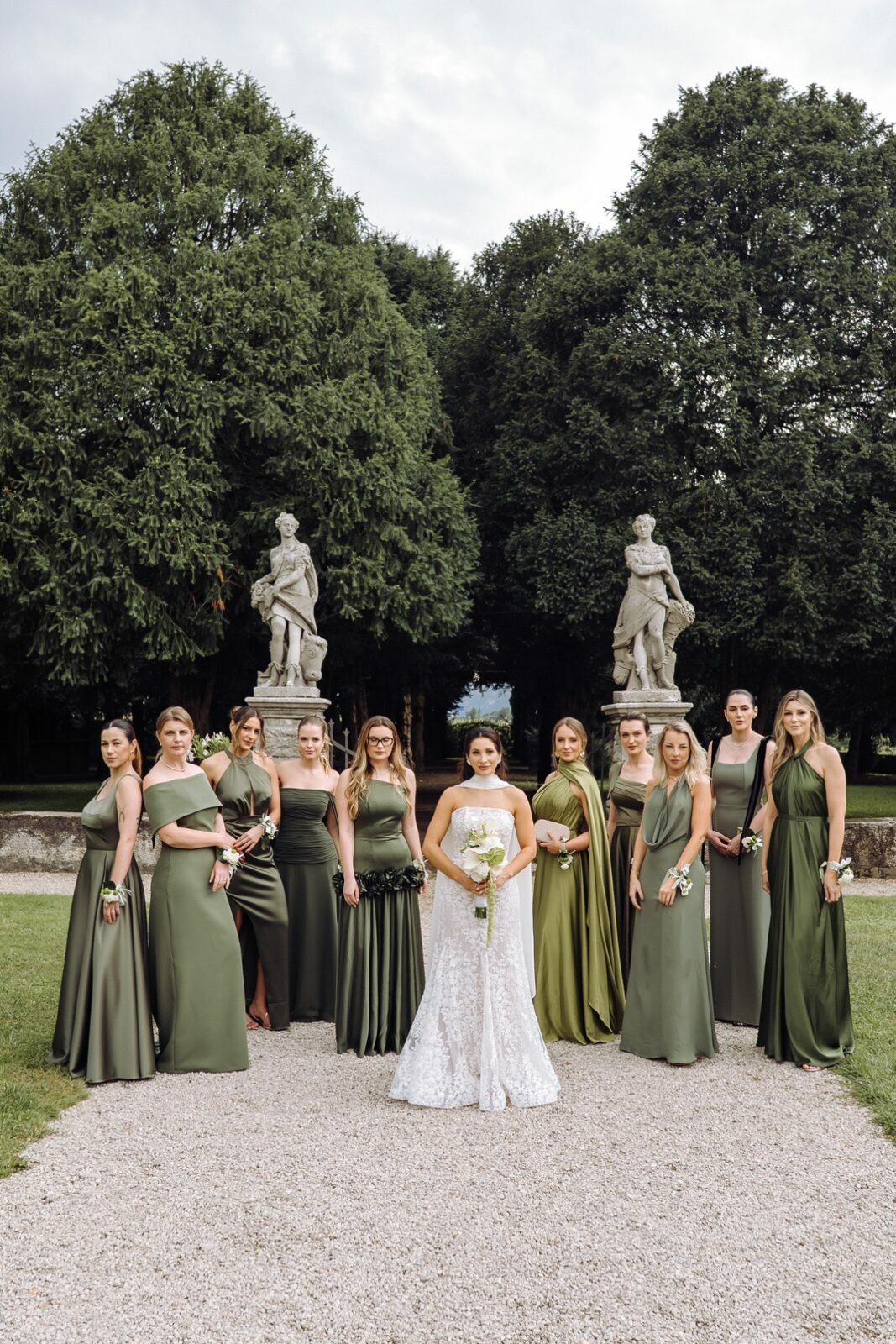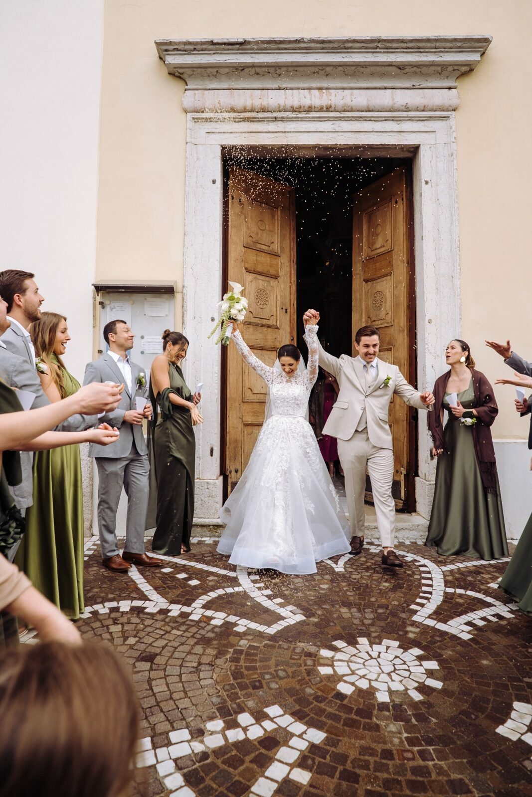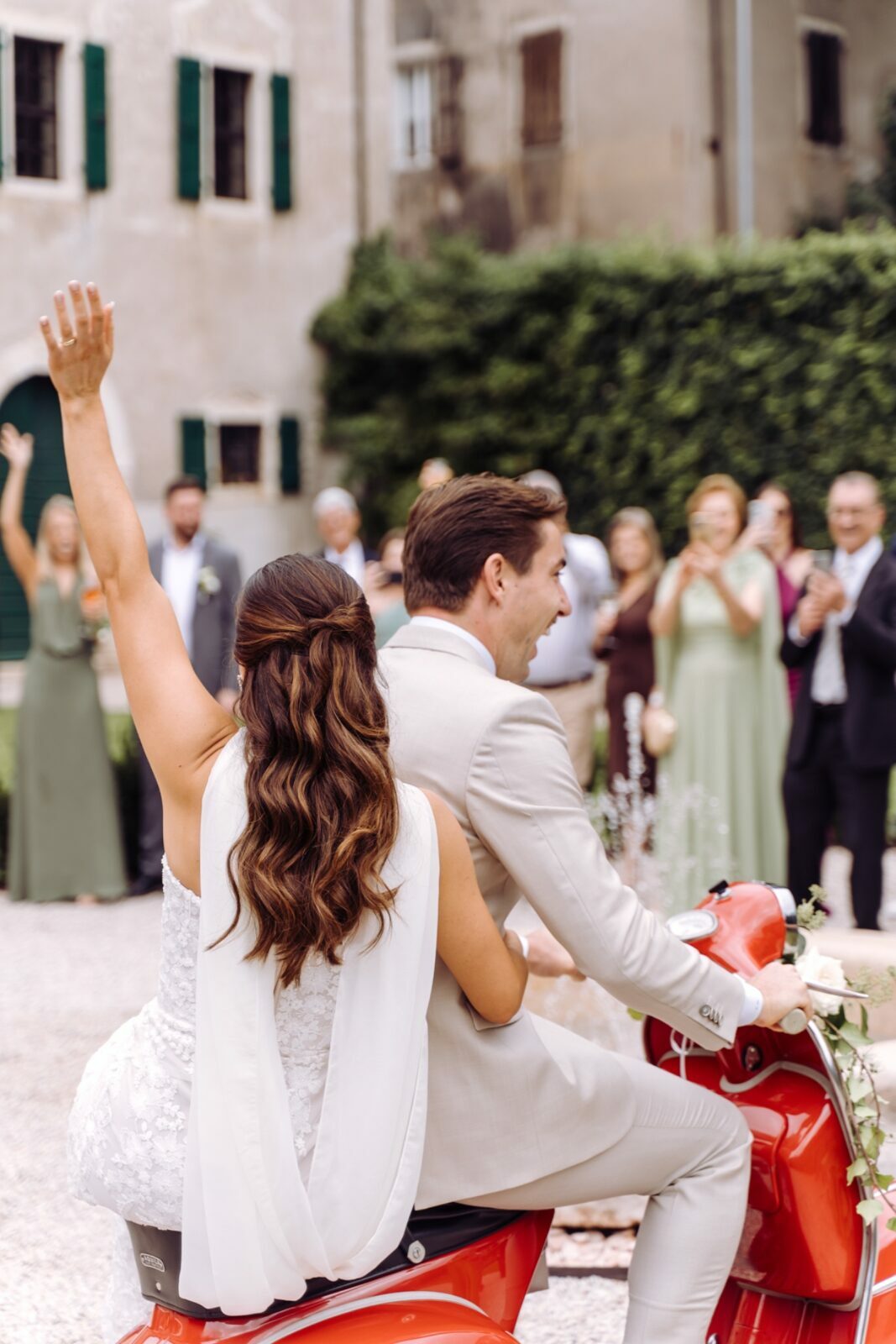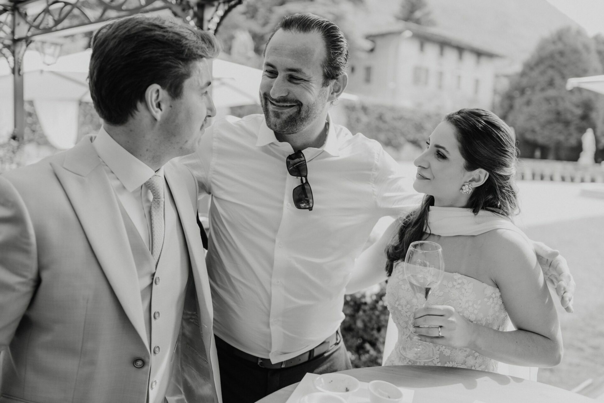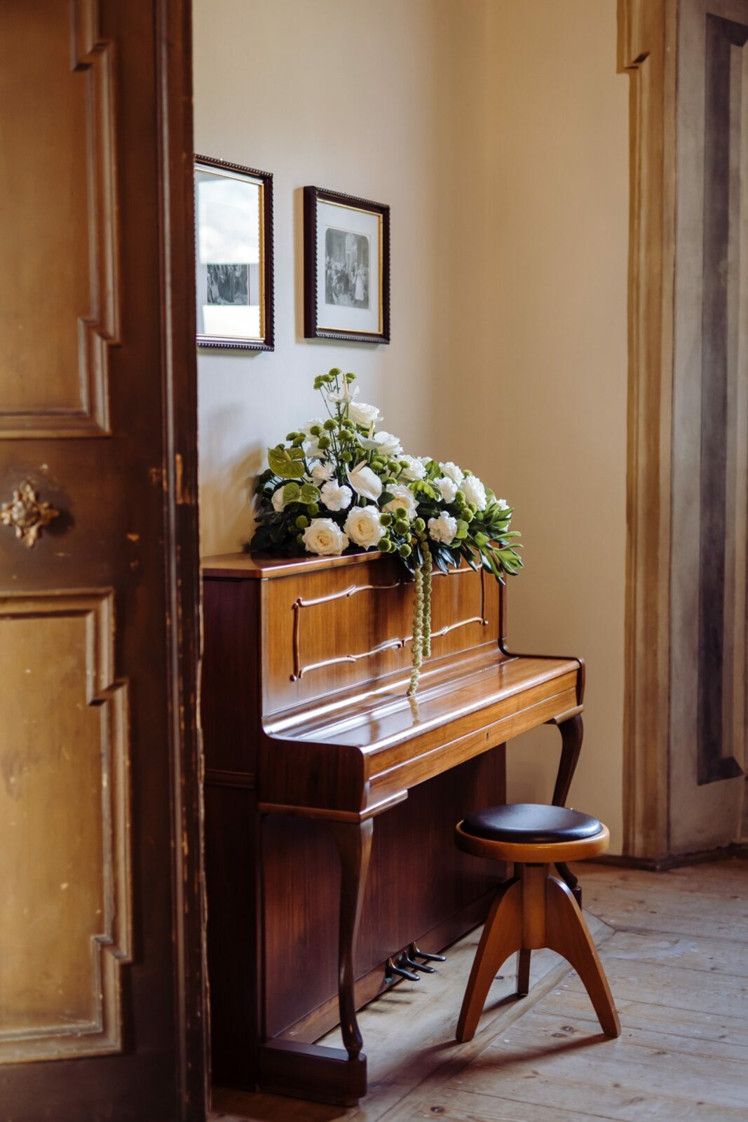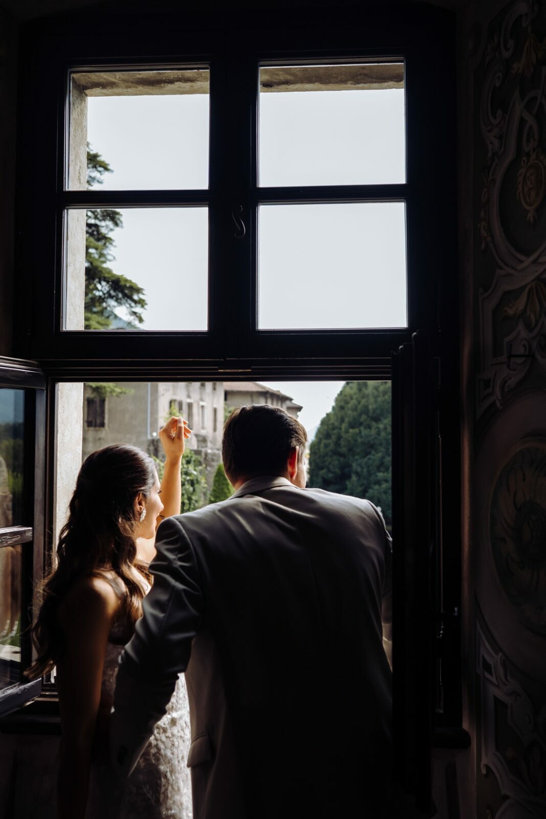 Casamento na terra dos antepassados do noivo, autêntico e emocionante. Cerimônia na igreja, na província de Trento, e recepção na Villa Bortolazzi, cercada por montanhas e parreirais. Destaque pro almoço em uma sala cheia de afrescos animado por um trio de músicas típicas italianas