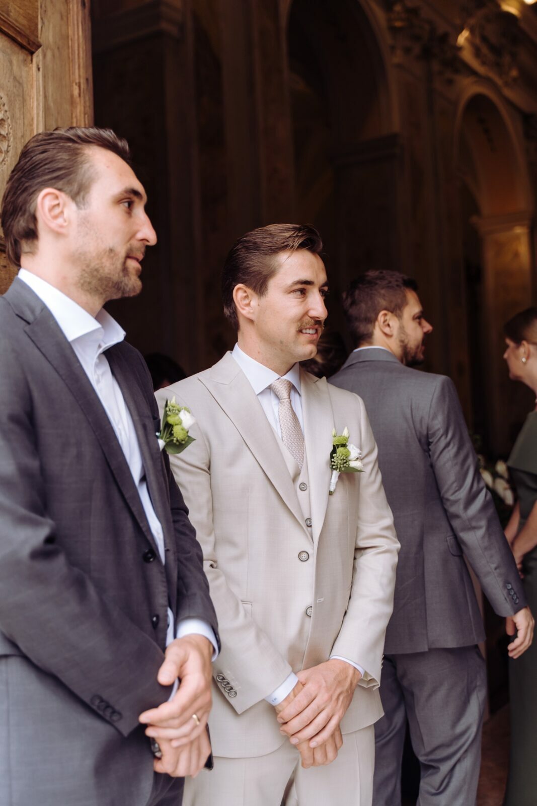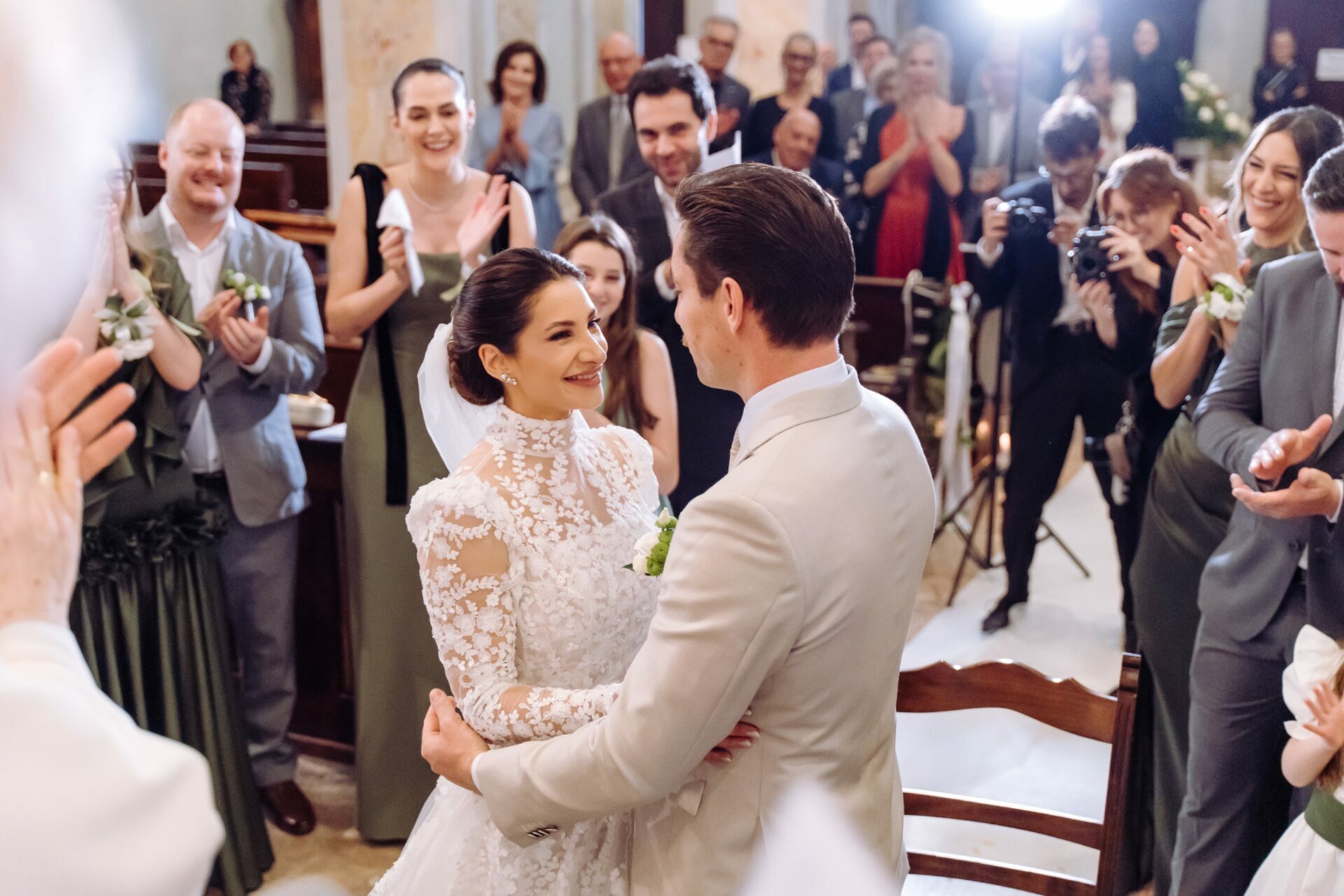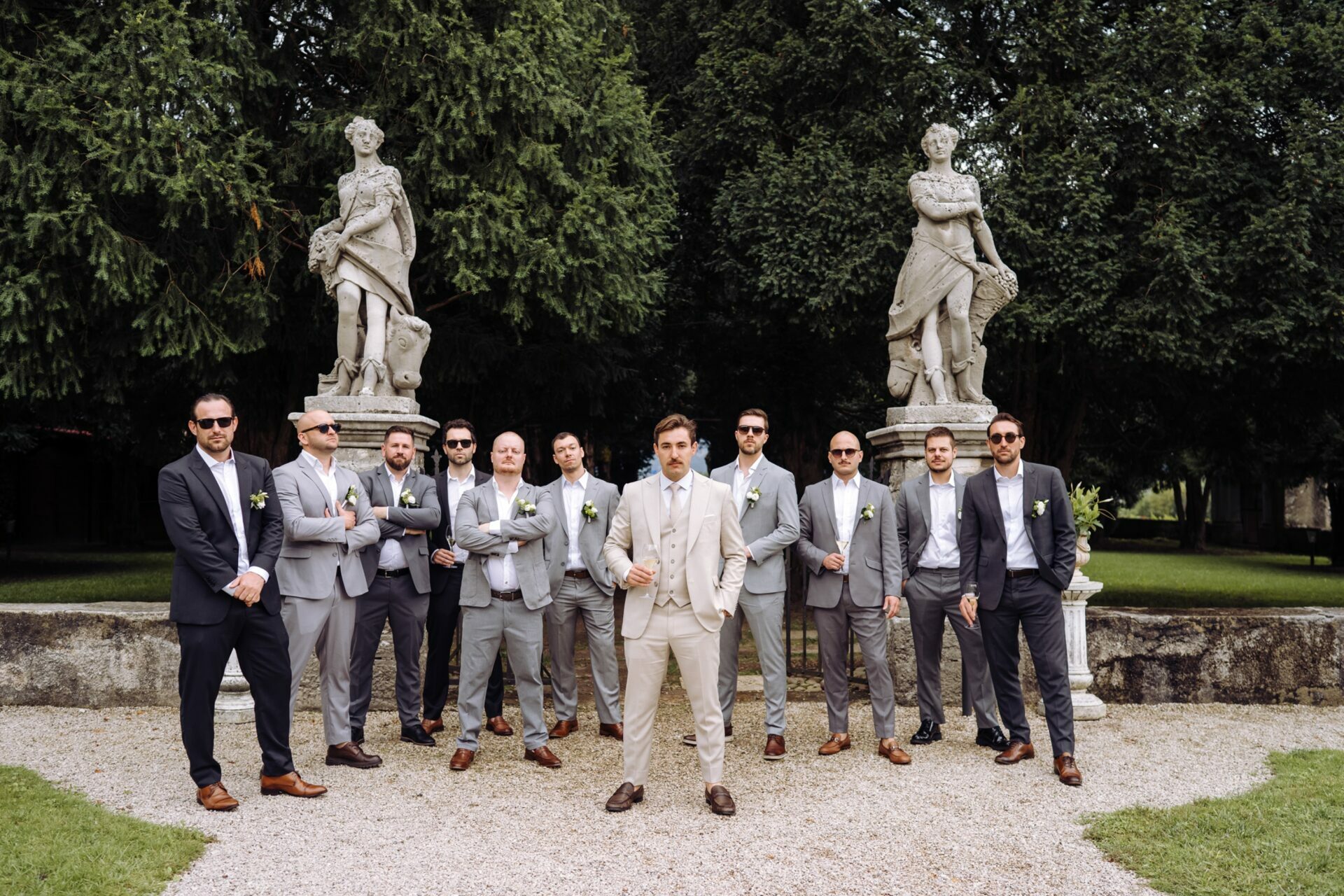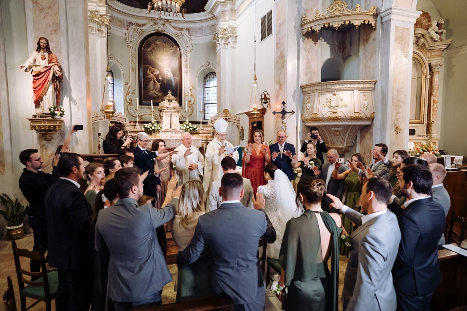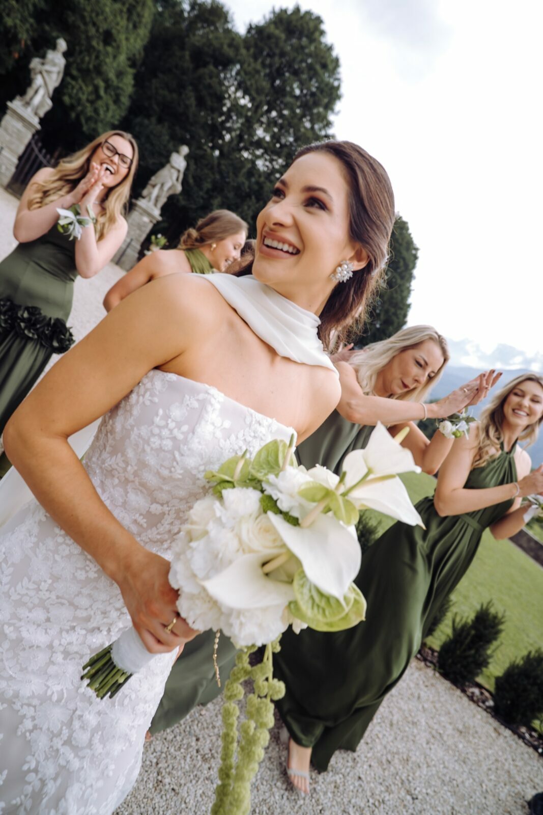 Casamento na terra dos antepassados do noivo, autêntico e emocionante. Cerimônia na igreja, na província de Trento, e recepção na Villa Bortolazzi, cercada por montanhas e parreirais. Destaque pro almoço em uma sala cheia de afrescos animado por um trio de músicas típicas italianas