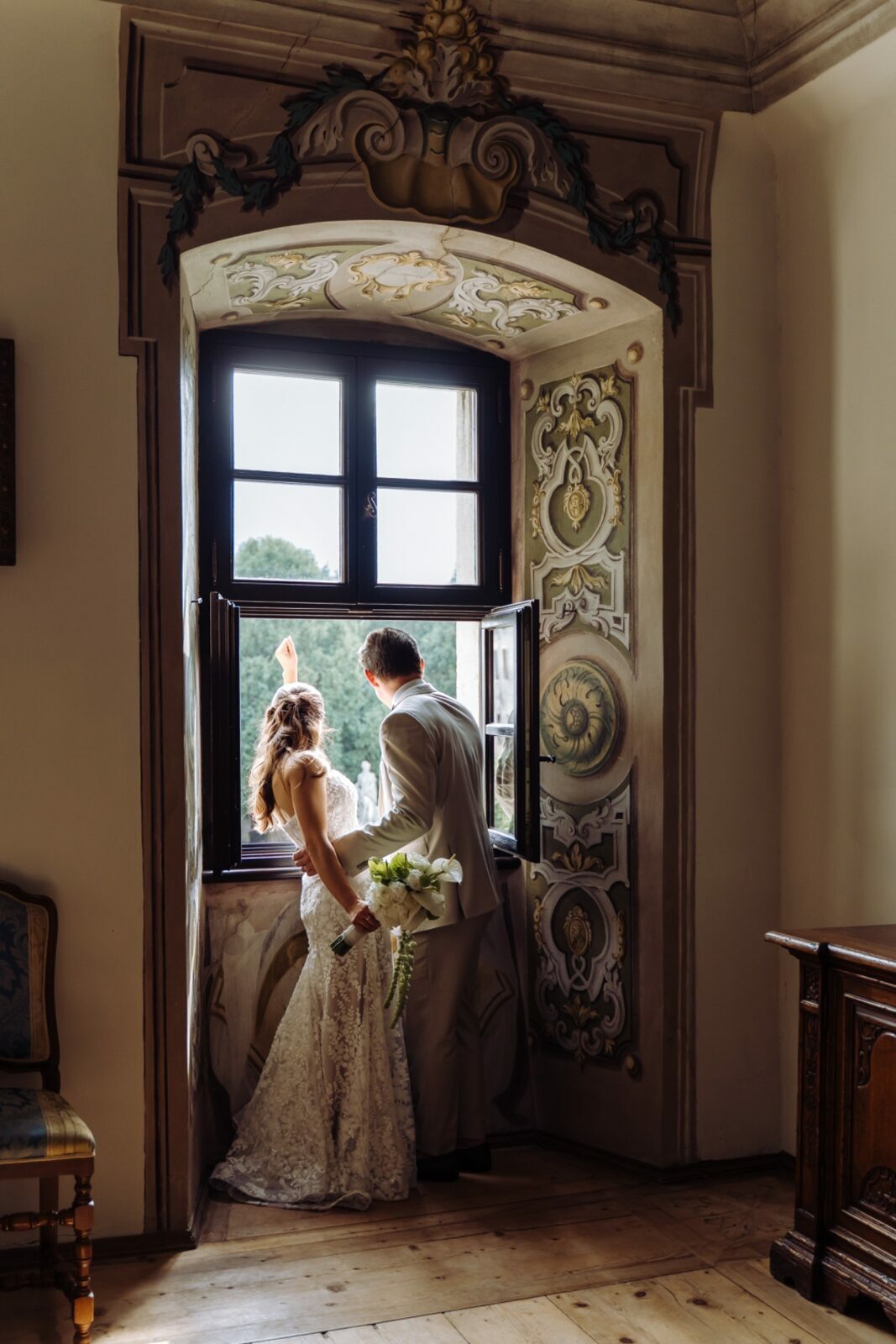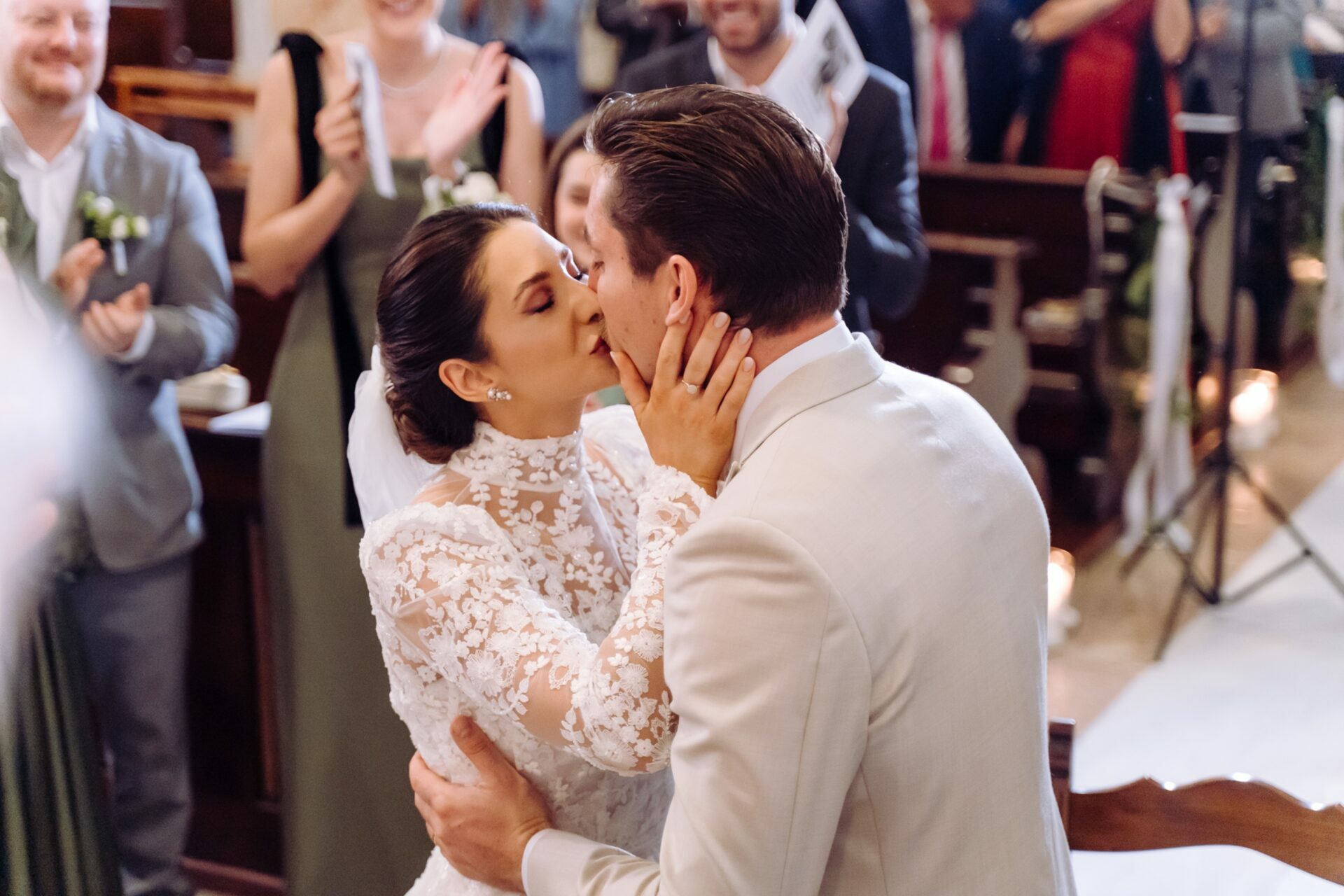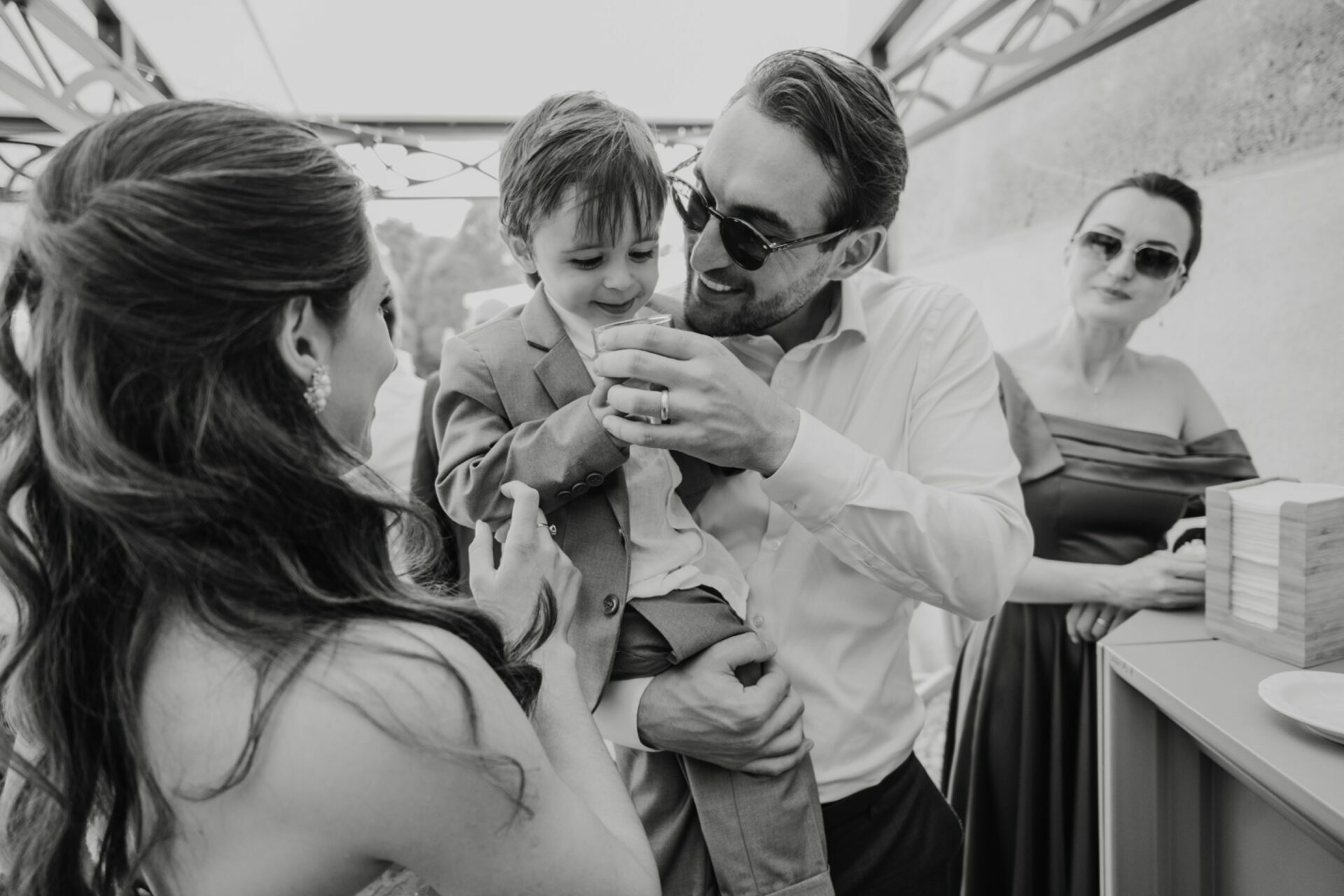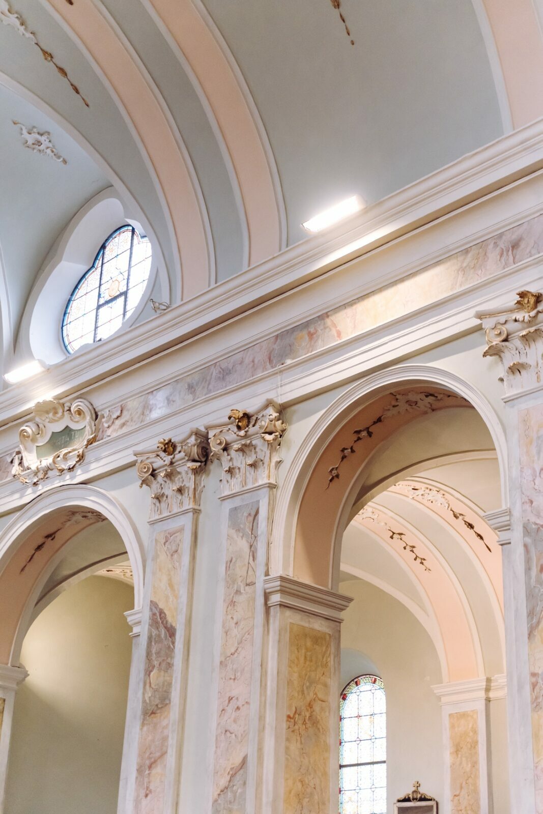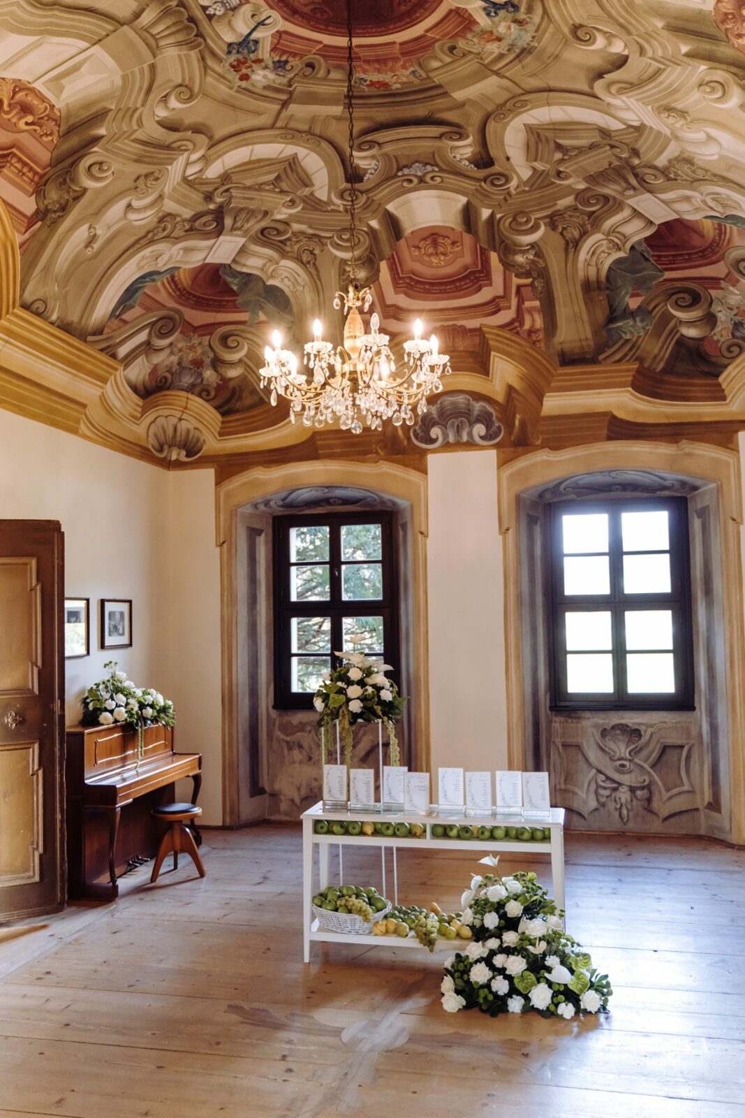 Casamento na terra dos antepassados do noivo, autêntico e emocionante. Cerimônia na igreja, na província de Trento, e recepção na Villa Bortolazzi, cercada por montanhas e parreirais. Destaque pro almoço em uma sala cheia de afrescos animado por um trio de músicas típicas italianas